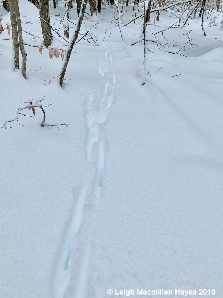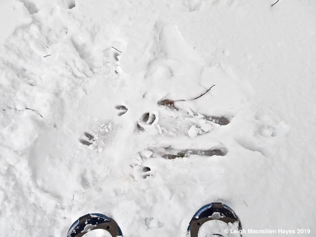 Yet another first, for where there is snow, there are tracks–those of our fellow hikers, but also of the wild mammals with whom we shared the space and I couldn’t help but smile at these left behind by a Red Squirrel. Let the tracking season begin.