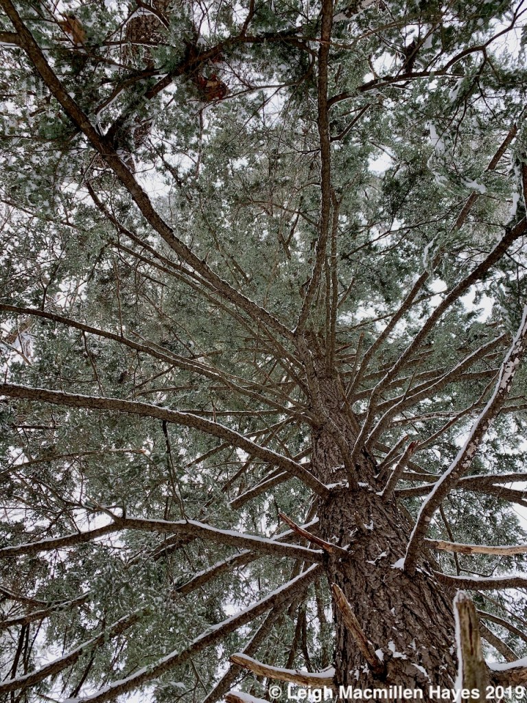 Upon a hemlock frequently visited for that’s what porcupines do, frequent the same tree year in and year out that is, I spied claw marks indicating the staircase upon the uneven bark substrate.