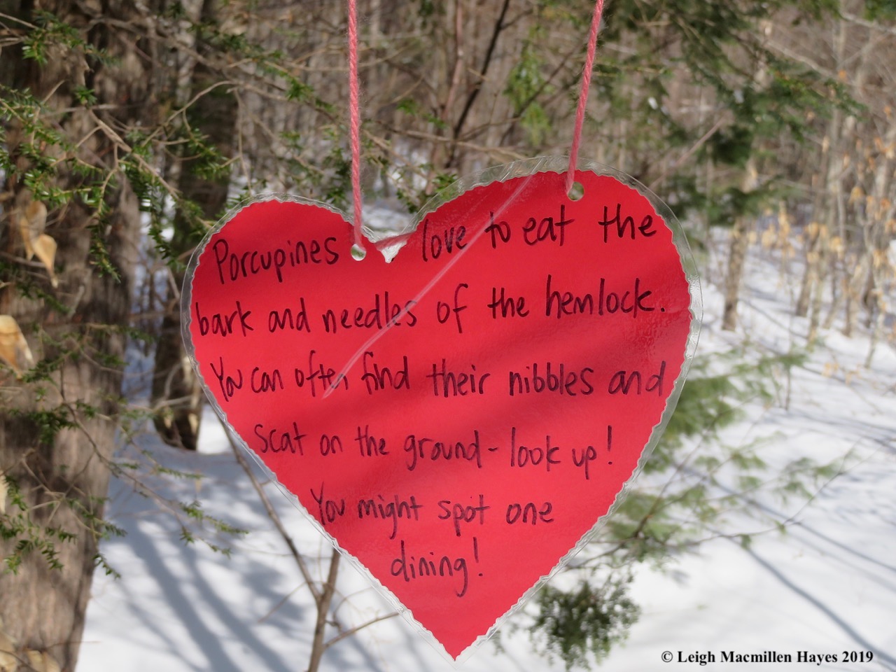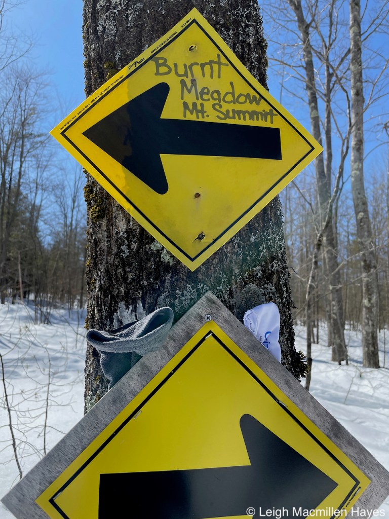 All trees grow out from the heartwood, and up from the uppermost branches. So if you place a trail blaze on a tree, it will always be in the same spot, you just need to make sure that you don’t screw it all the way into the tree or the tree will grow around it eventually. (Rule of thumb: leave about two inches between the sign and the tree; and check it each year)