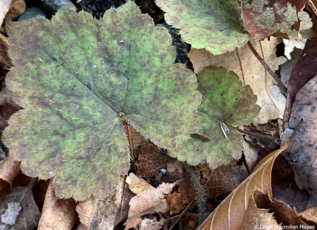 But after crossing rocks to get to the other side, the fall coloration of Tiarella (Heartleaf Foamflower) in all its hairiness called for attention.