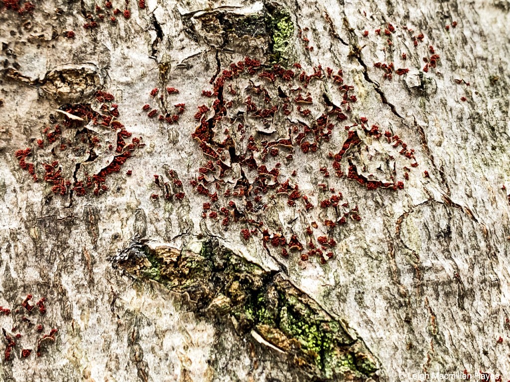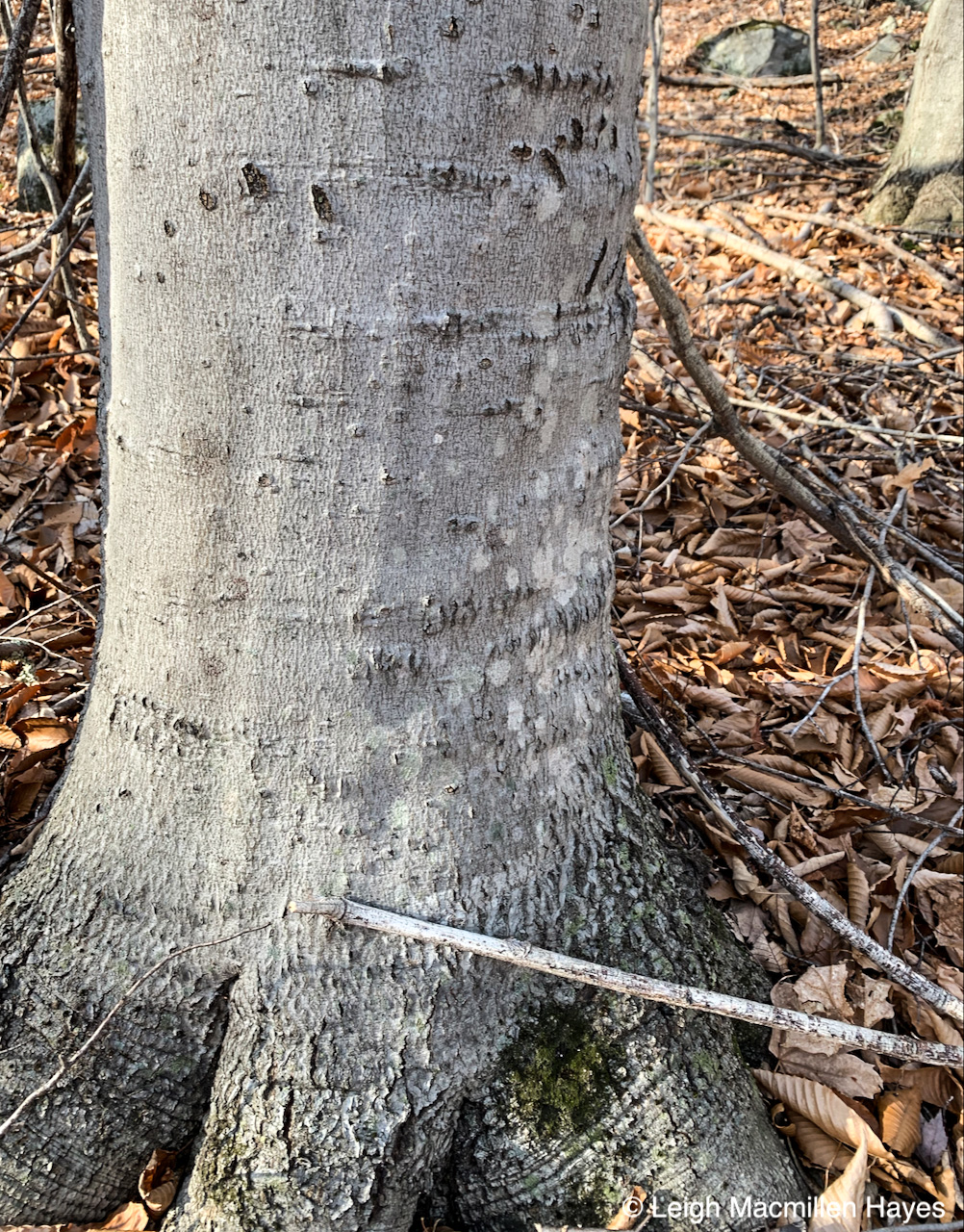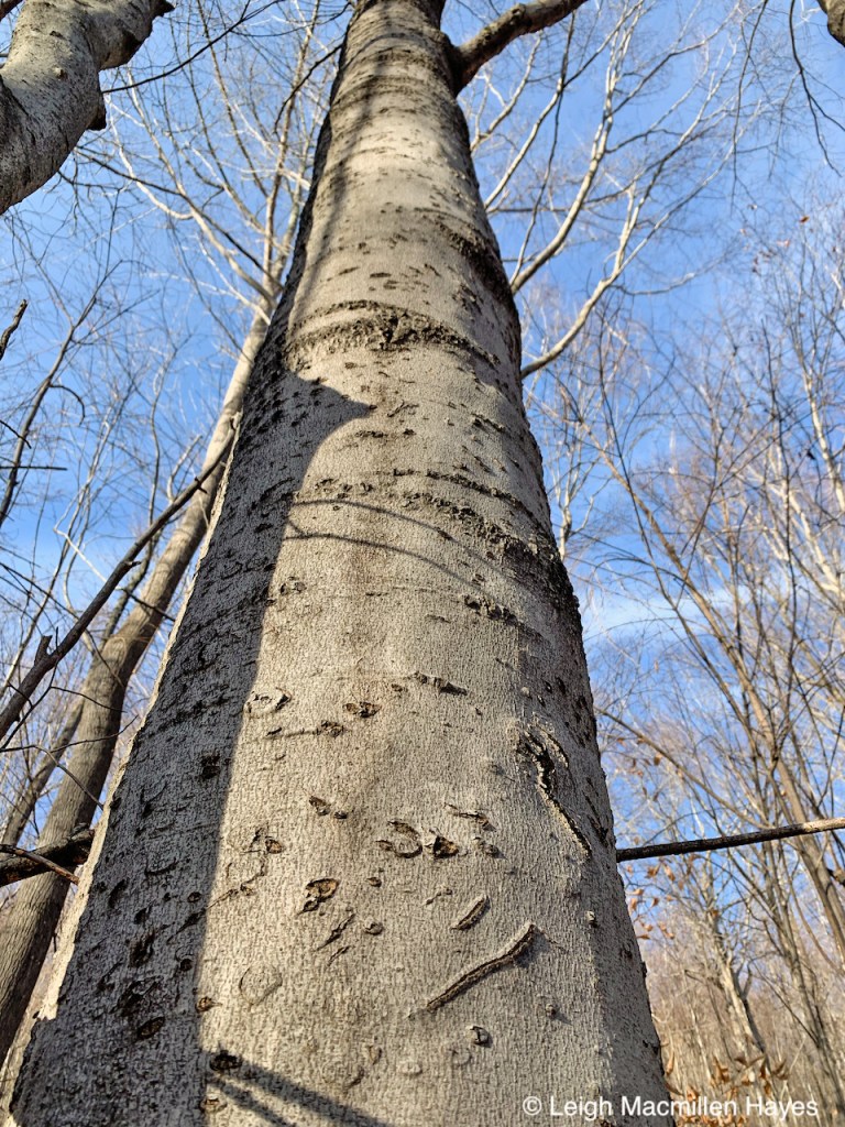 Of course, as things go in the natural world, or any world for that matter, where one finds delight, there is also something not so delightful taking place. In this case, Beech Bark Disease that begins with many Beech scale insects feeding on the tree’s sap while they form a covering of white wooly wax over their body. The scales create wounds in the trunk that allow the nectria fungus to enter bark, cambial layer, and sapwood, thus producing cankers, or raised blisters and calluses.