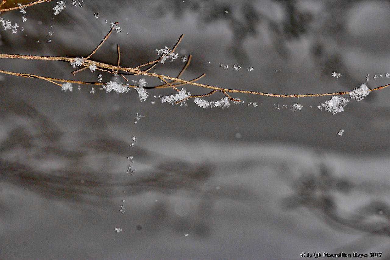 Standing there in silence, the sky kept changing while the wind gusted to at least 20 miles per hour and snow flakes fell.