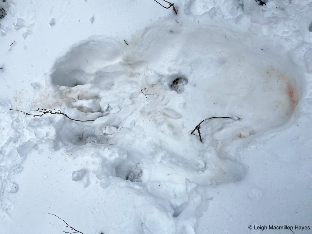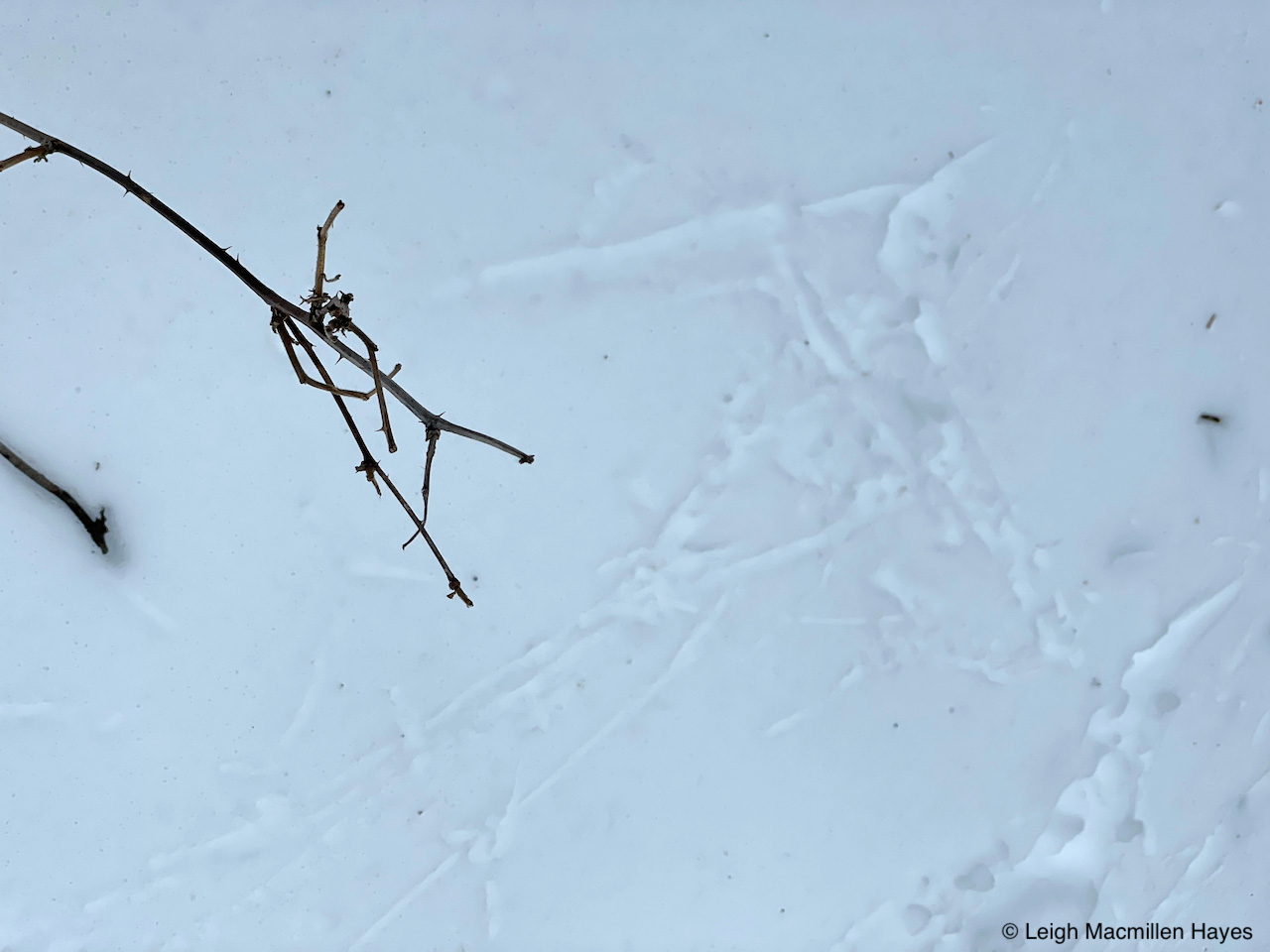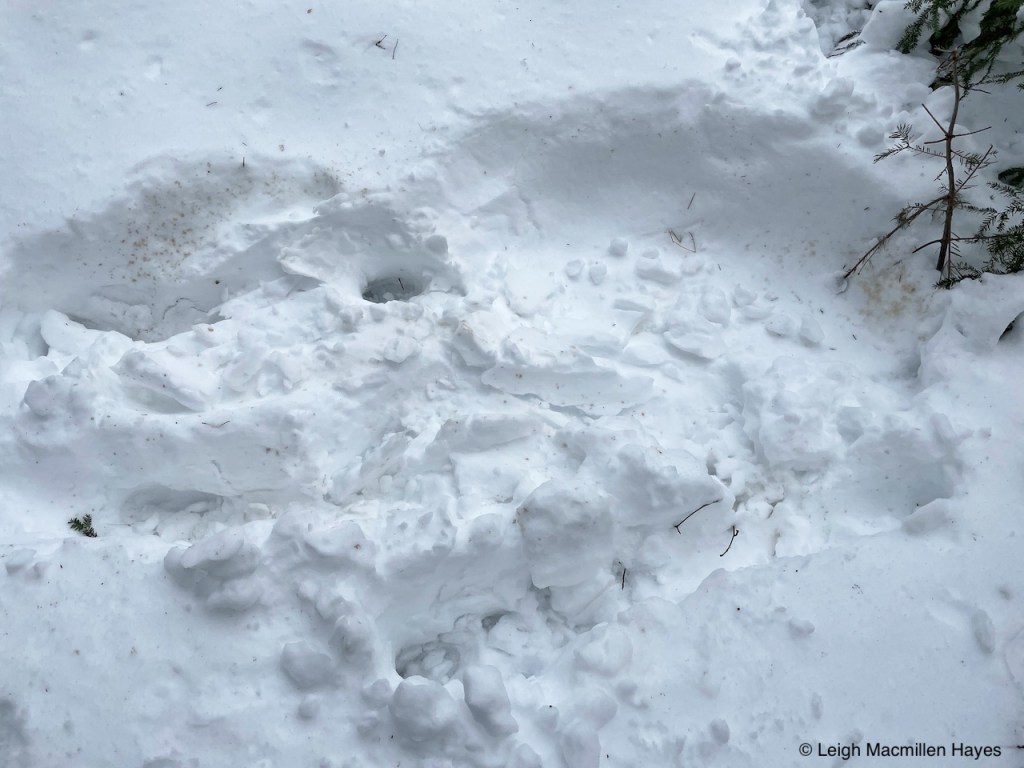 That said, right beside the second porcupine den, I found a small hole in the ground capped in hoar frost and suspected that someone was inside. It seemed a bit larger than a chipmunk hole. Maybe a squirrel? Or a weasel? Or even, the porcupine’s den vent?