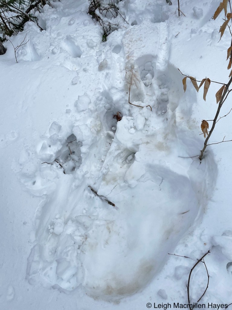 But I digress, and so back to the trail. We followed two today, and one of our first finds was that tree we always covet. A bear-claw tree, this one a favorite and oft visited given the claw marks that decorated it.