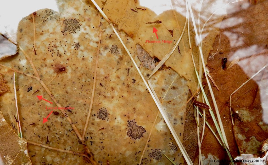 If you do some container dipping at a vernal pool near you in order to take a closer look, I trust you won’t dump these onto the leaf litter rather than back into the water. As much as the females annoy us once they morph into that annoying flying insect that needs to suck mammal blood to gain proteins and nutrients for their eggs, they play an important part in the food web.