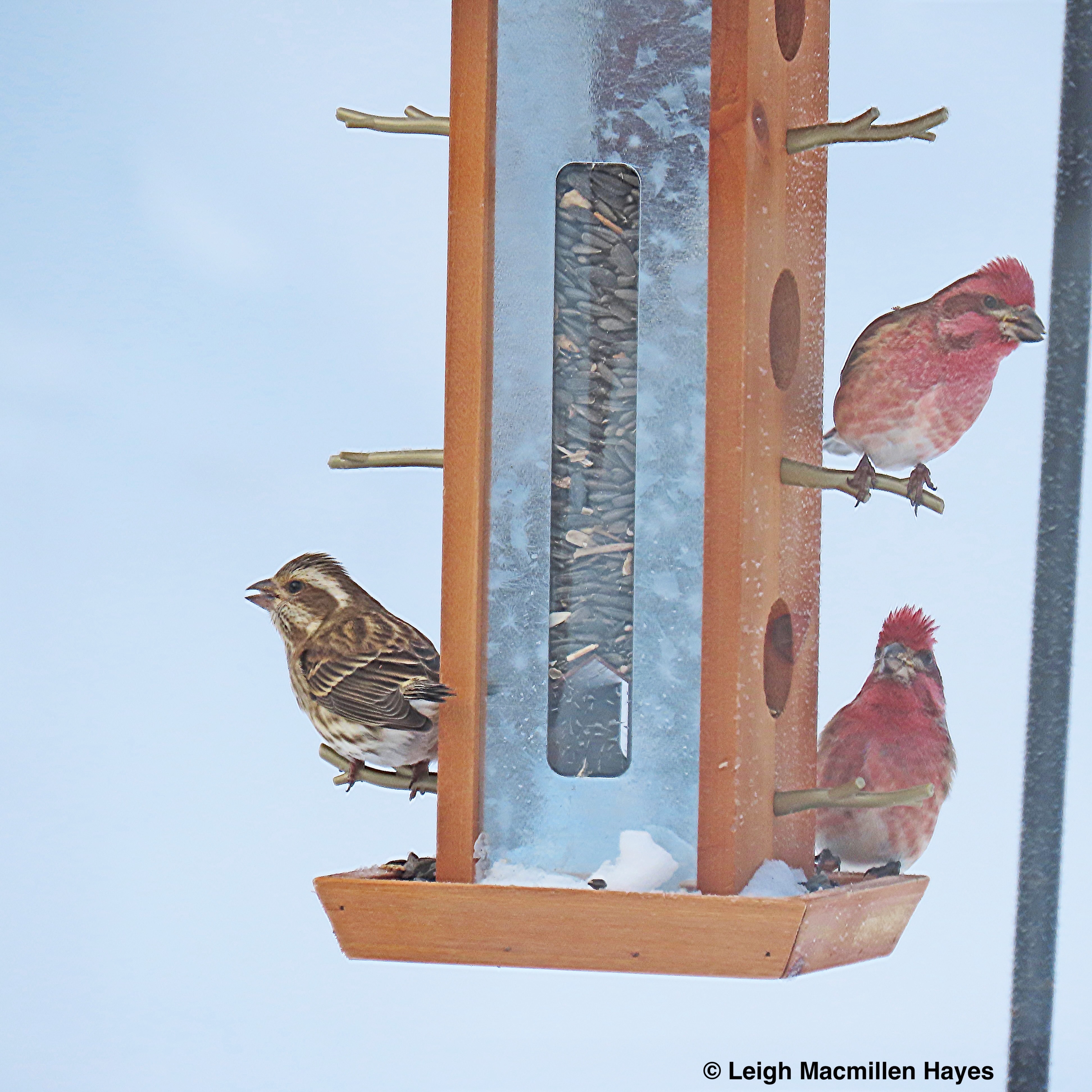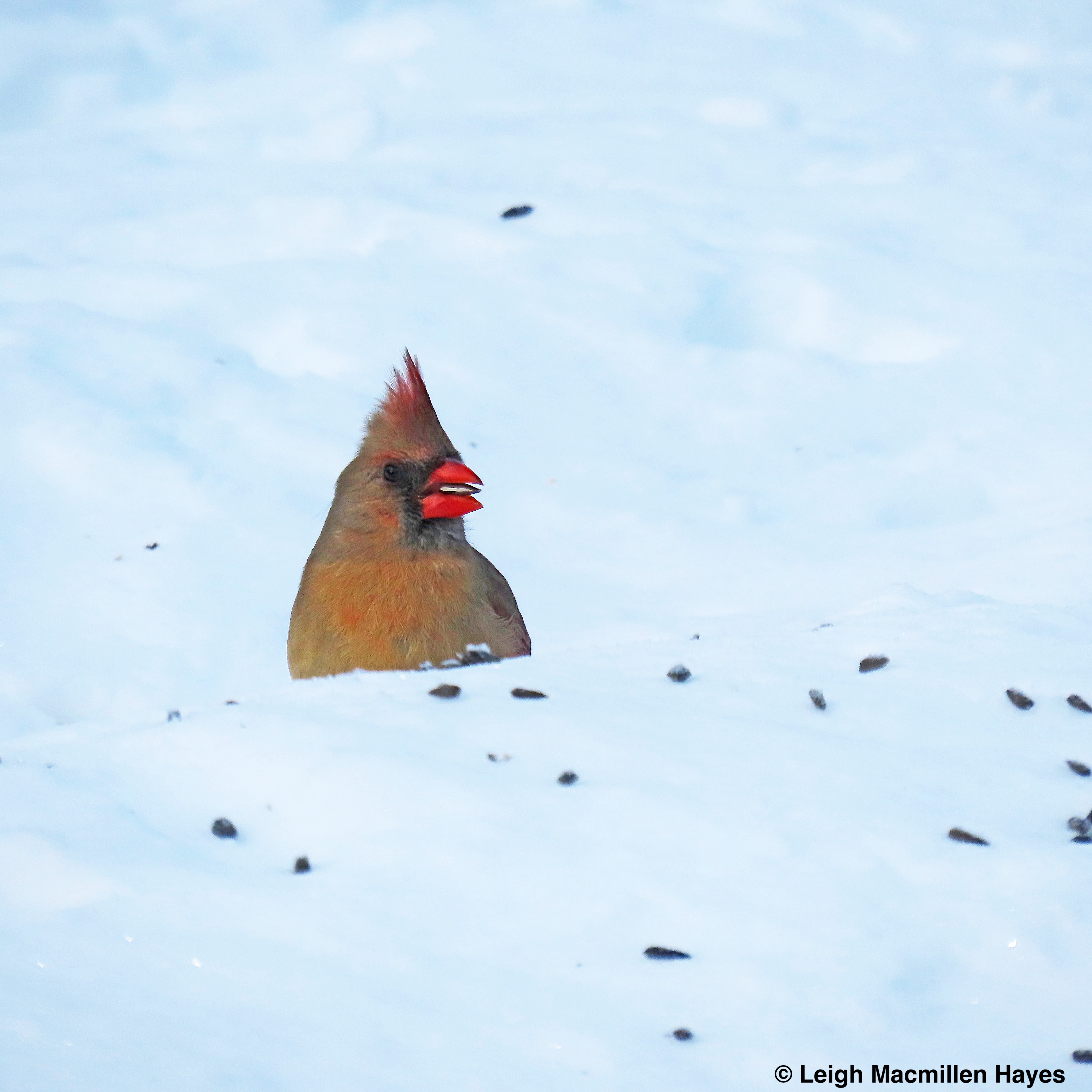 The Cardinals also bring their young to visit on a regular occasion, and sometimes the young’uns even come on their own. Watching them reminds me that many wild parents are amazing caregivers. Beavers and White-tailed Deer and Moose and Coyotes are among those who stay together as a family unit for a year or more. But not all are the same, like the frogs and salamanders who lay eggs and then leave the vernal pool.