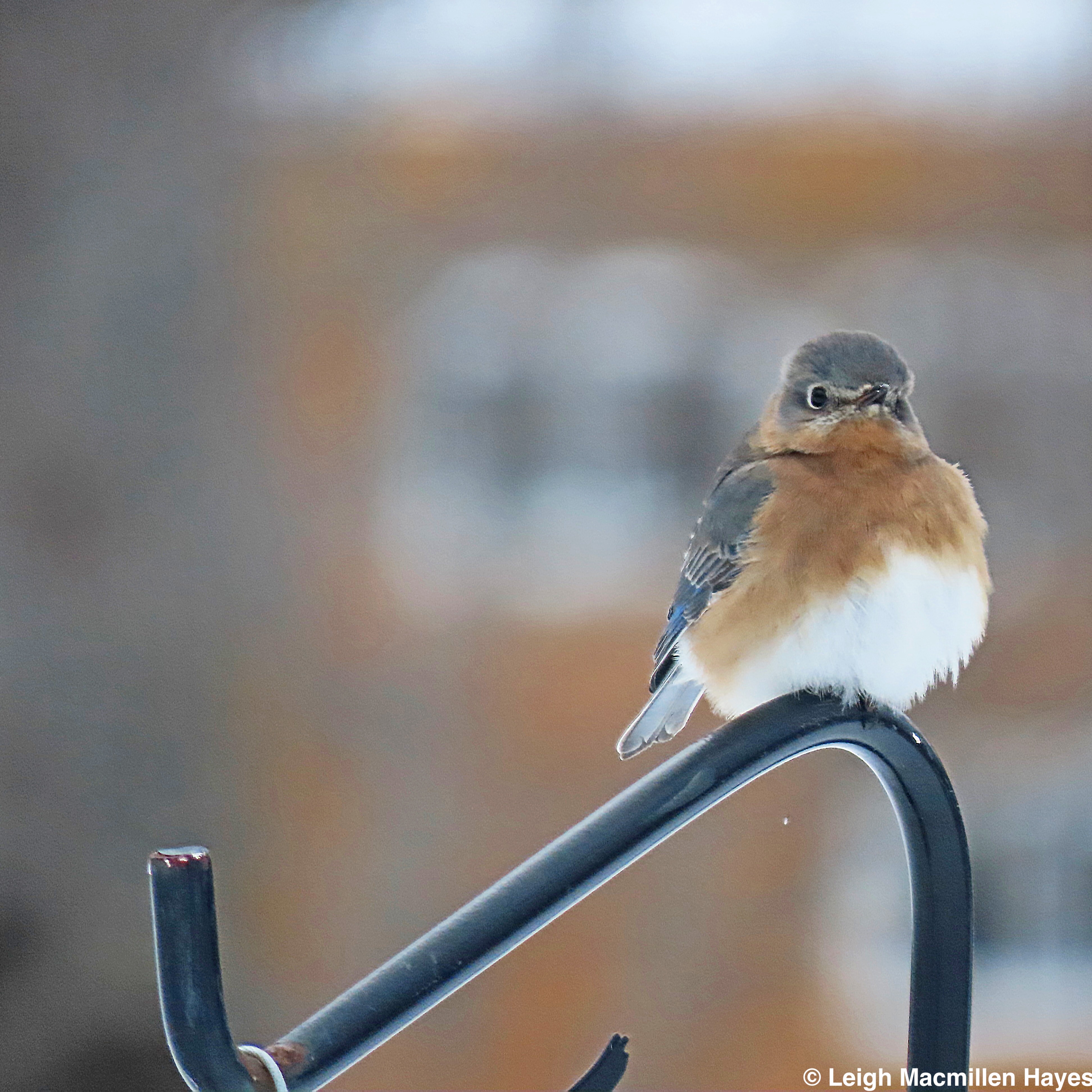 That said, there’s another new neighbor in the ‘hood. Remember the male Wren who worked so hard to fill the birdhouse with sticks? And then I didn’t see him at this spot again. A few days later I spotted a male Bluebird checking it out. And tada . . . a female is sitting on eggs, I do believe.