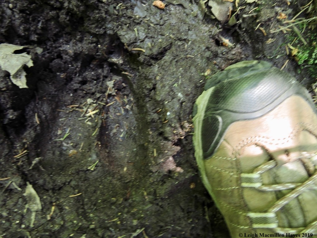 Do you see the diagonal orientation of pairs of prints in the above photos of the second set of tracks? And the five toes–tear-drop shaped as they were?