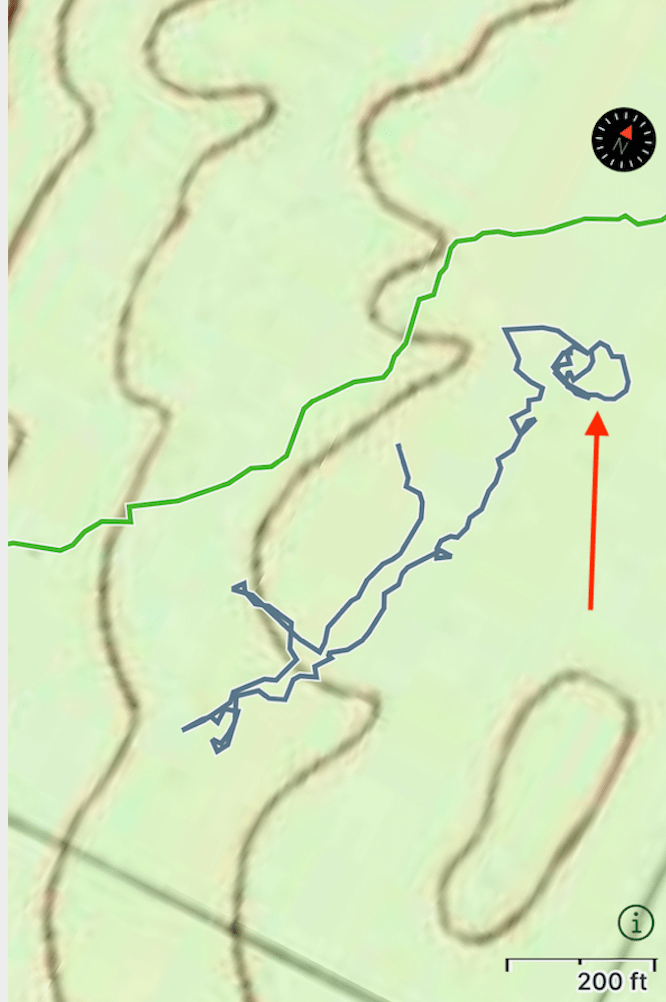 When I got to a ledgy spot, I decided to explore further–thinking perhaps Mr. Bob might have spent some time here. Not so–in the last two days anyway.