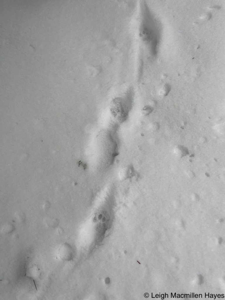 That’s not all, There were more sets of prints oriented on the diagonal. Think back to the River Otter, who is in the Weasel family. This small critter is a member of the same family, but these are the prints of a Mink.