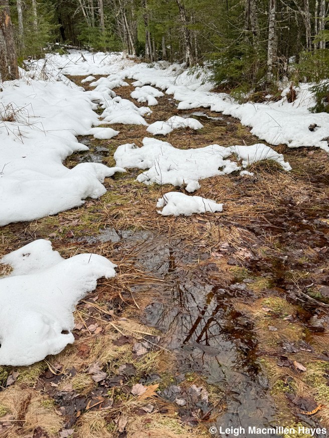To set the stage, we’d had a 5 – 6 inch snowstorm Friday night into Saturday, followed by some melting, and then rain and freezing rain on Sunday, and fog and rain on Monday. A smorgasbord of spring weather.