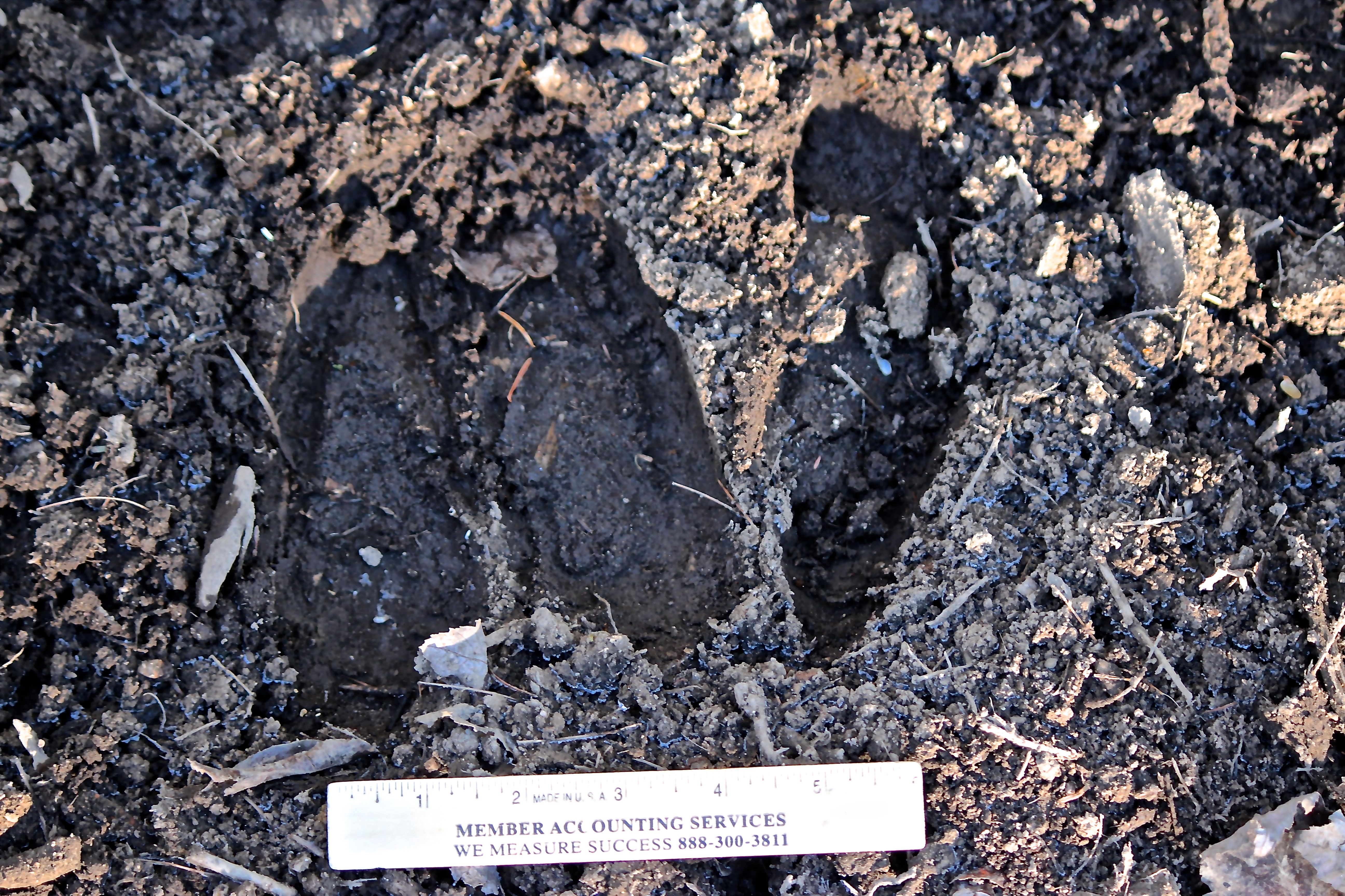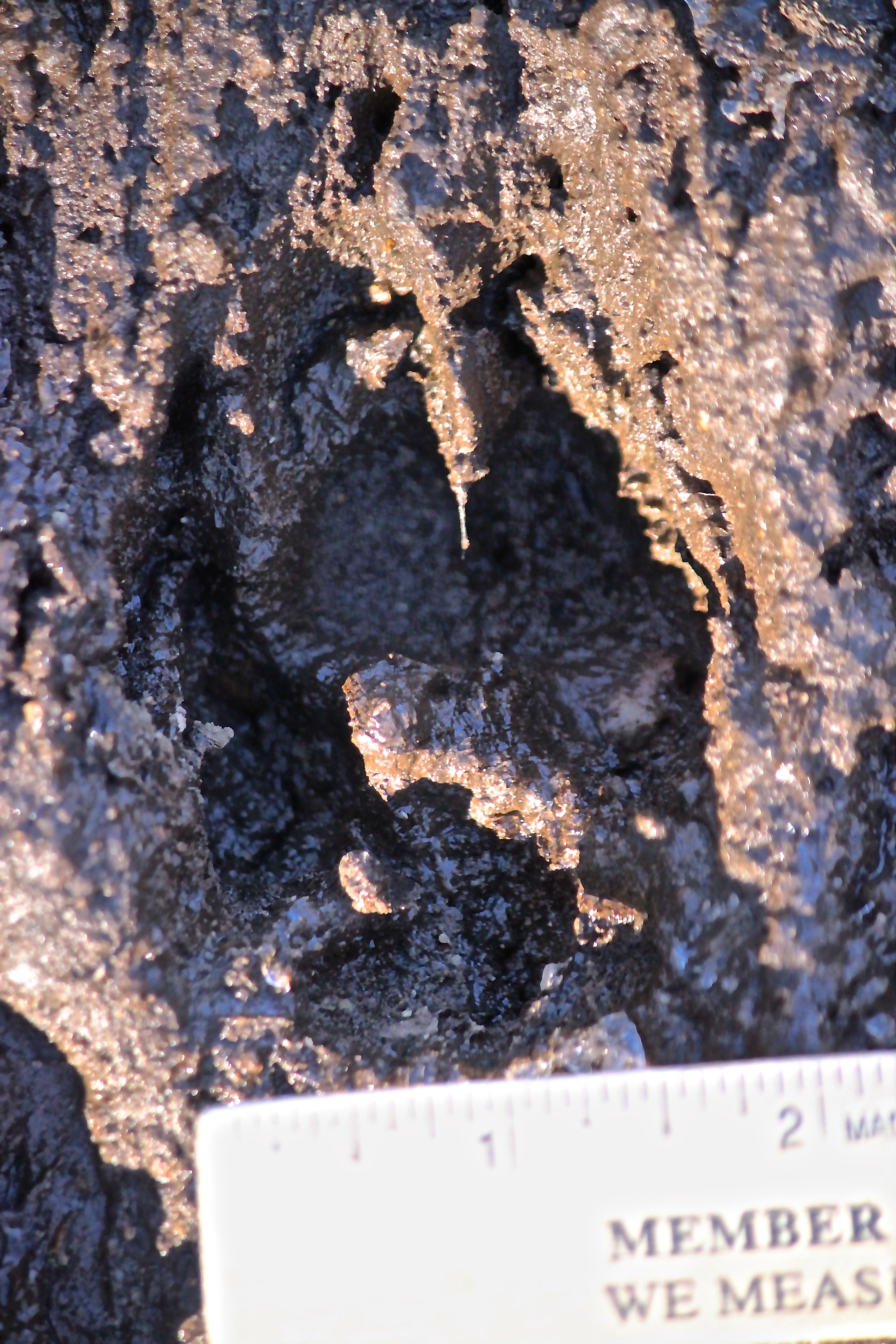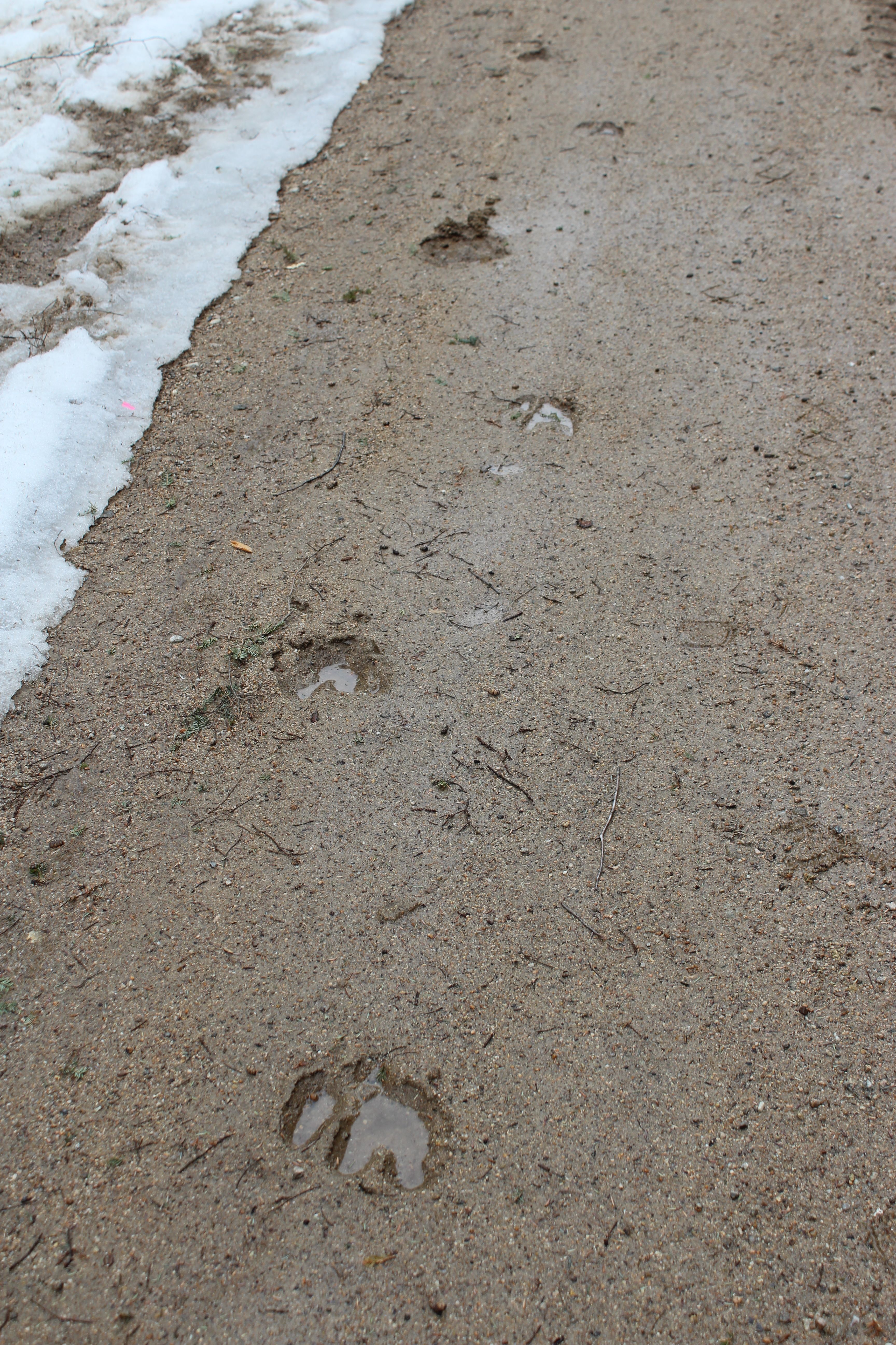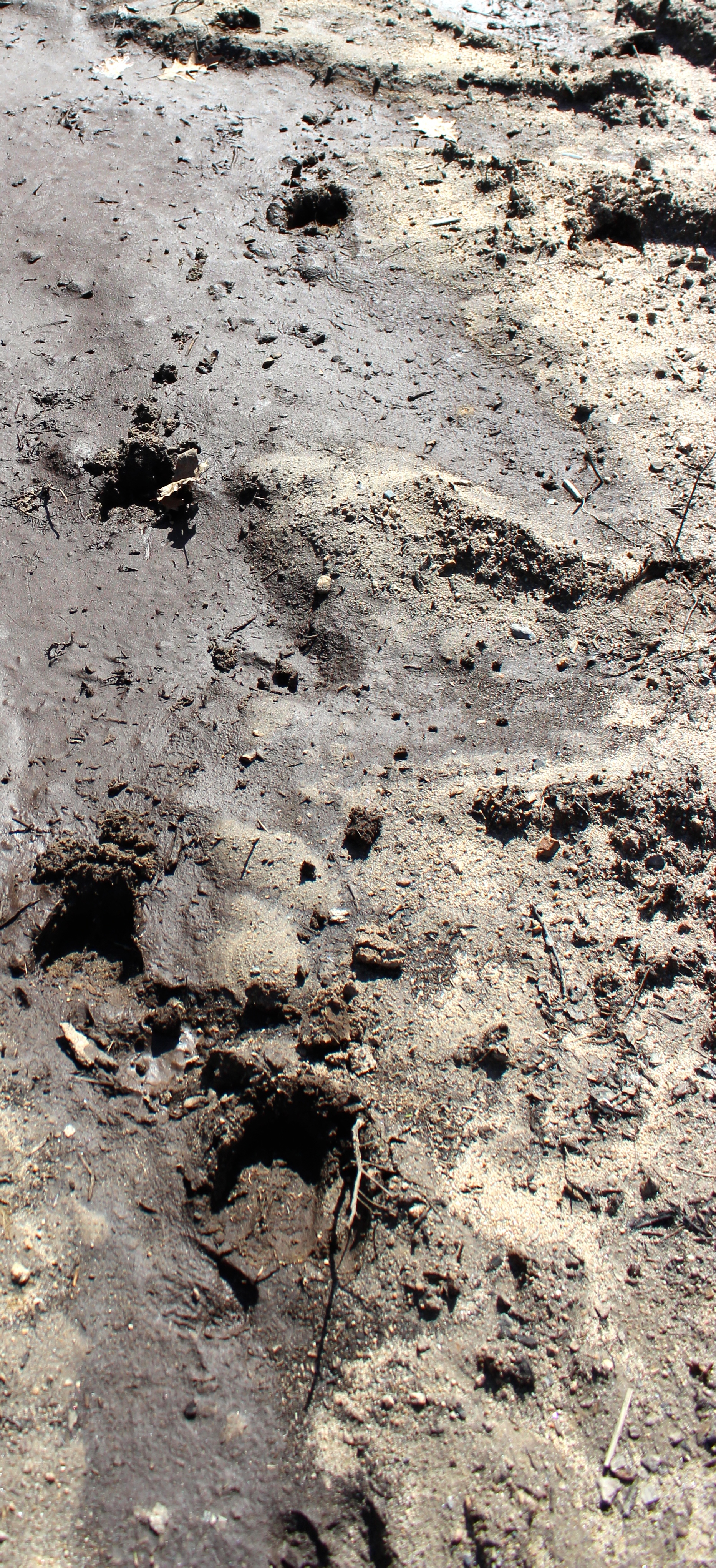 Do you see the diagonal orientation of pairs of prints in the above photos of the second set of tracks? And the five toes–tear-drop shaped as they were?