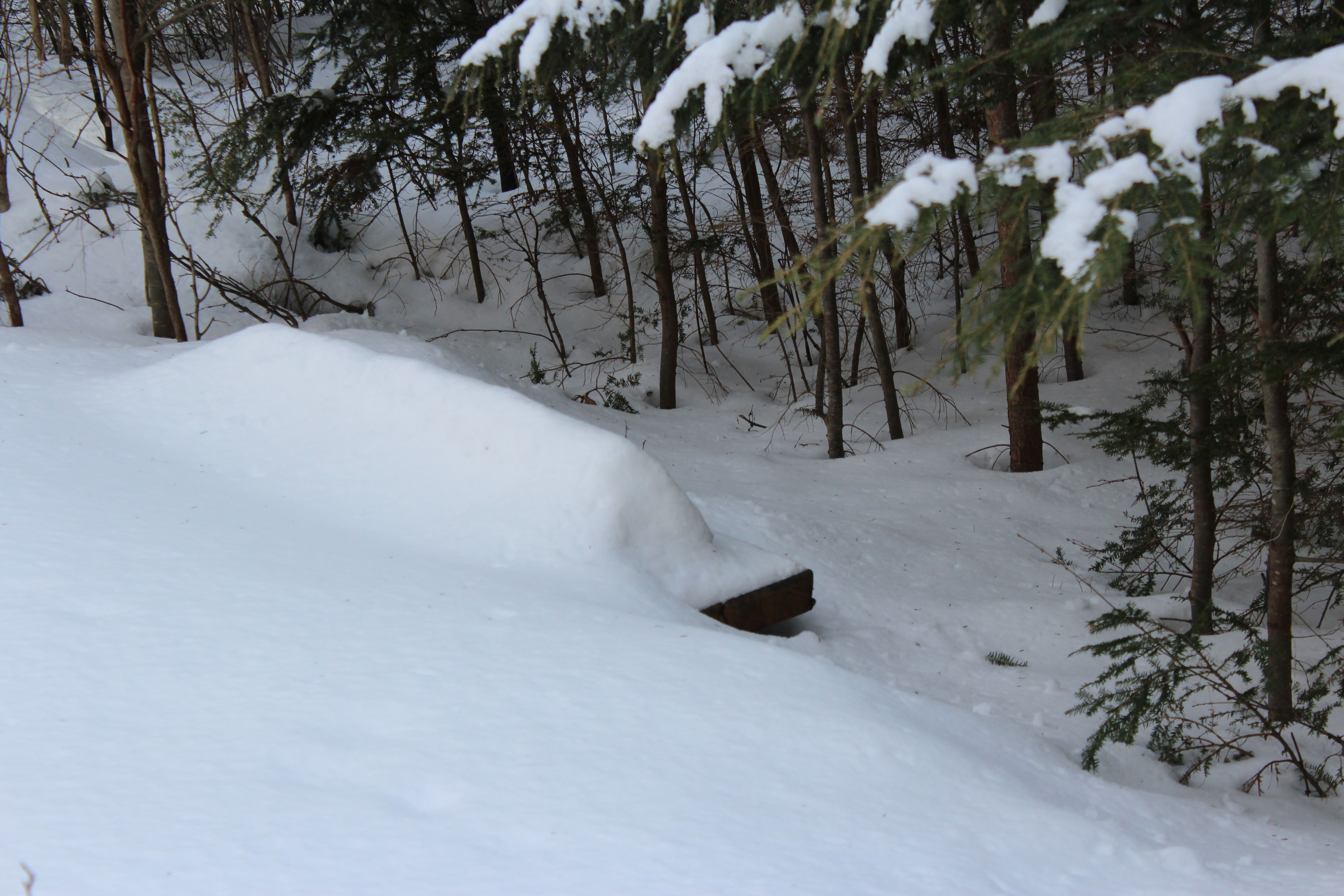 The bounding slide on the left was first and probably occurred early Saturday as it still snowed. Such was the bound and slide so filled in, yet still representational.