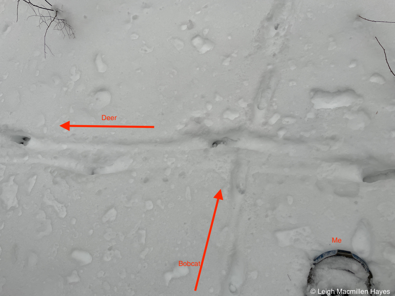 In both situations, it was the same cast of characters who could serve as a predator: Red Fox, Coyote, and Bobcat. Of all of them, the Bobcat would be of most concern. The largest concern would be a weasel whose tracks I did not spot–a Fisher.
