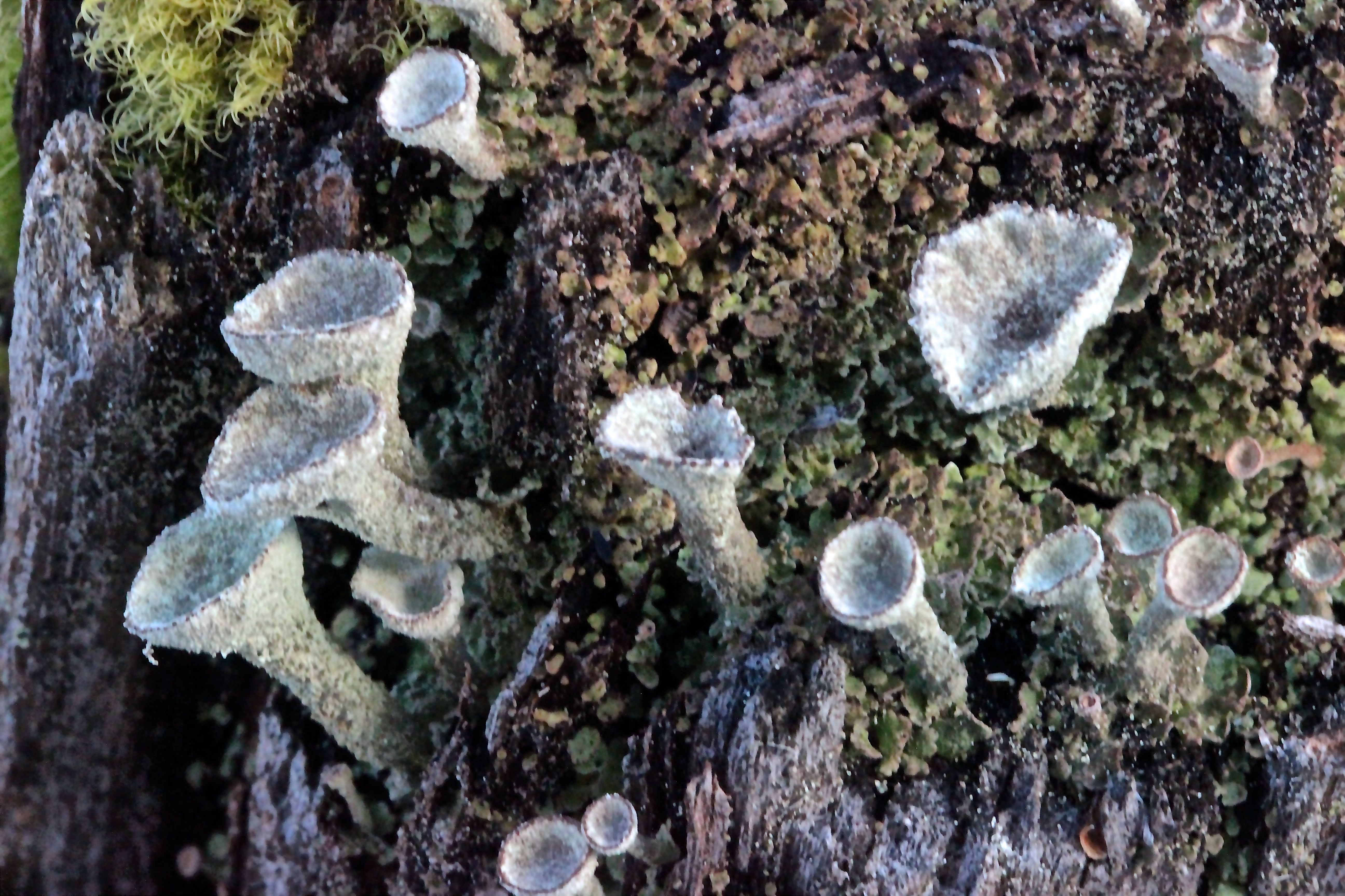 Its growth formation is rather unique. In one sense, it reminded me of a sombrero, but in another sense, I saw fountains stacked one atop another, each giving forth life in their own unique fashion. But rather than being called Fountain Lichen, its common name is Ladder Lichen–perhaps referring to the fact that the pixies can easily climb up and up and up again.