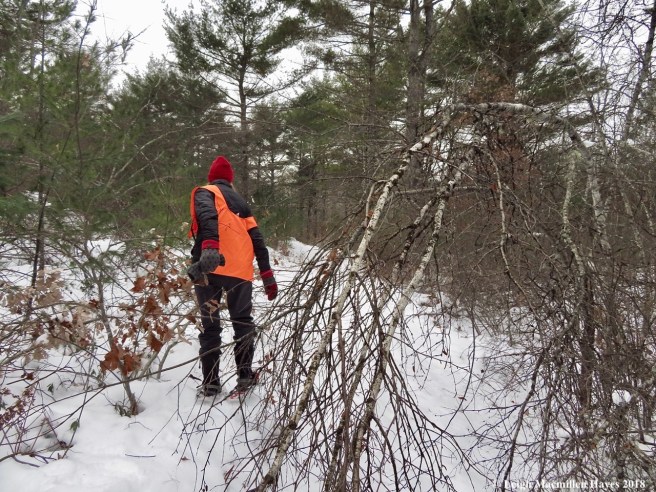 By now, you must be wondering if I was really at the bog for I’ve hardly shown any pictures of it. Yes, I was. And alone was I. When I first arrived by the water’s edge, I noted two vehicles that had braved the road and as I stood looking out at the old course of the Saco River, I heard a couple of voices which confirmed my suspicion that they’d gone kayaking. But other than that, I had the place to myself. Well, sorta.