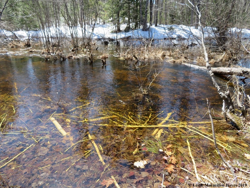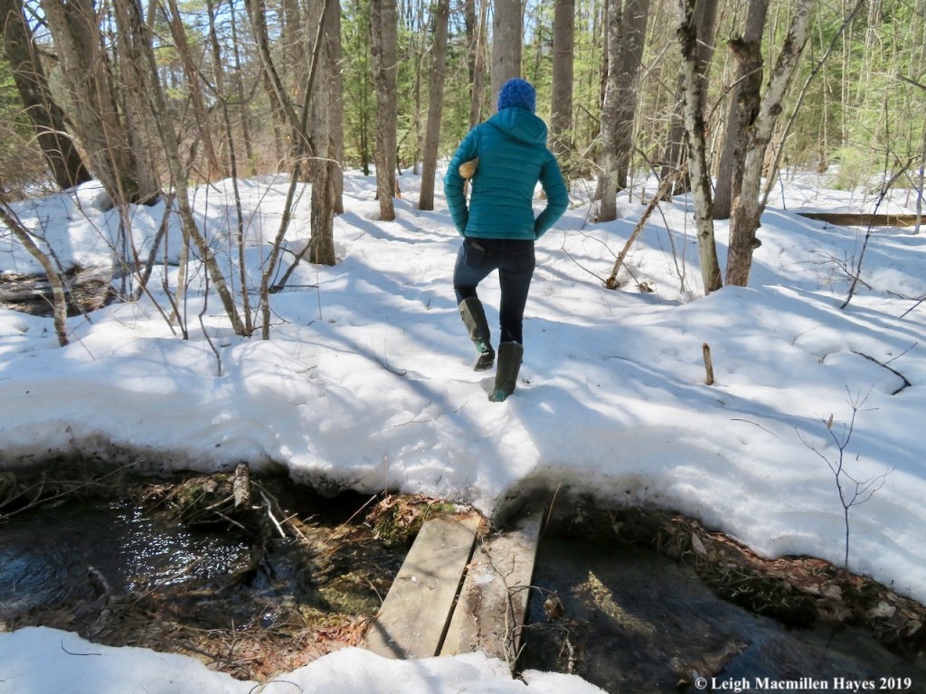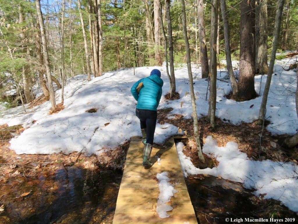 Also helping patrol the roadway was a Spring Peeper, the X on its back giving reference to its scientific name: Pseudacris crucifer–the latter meaning cross-bearer. Notice his size–about as big as a maple samara.