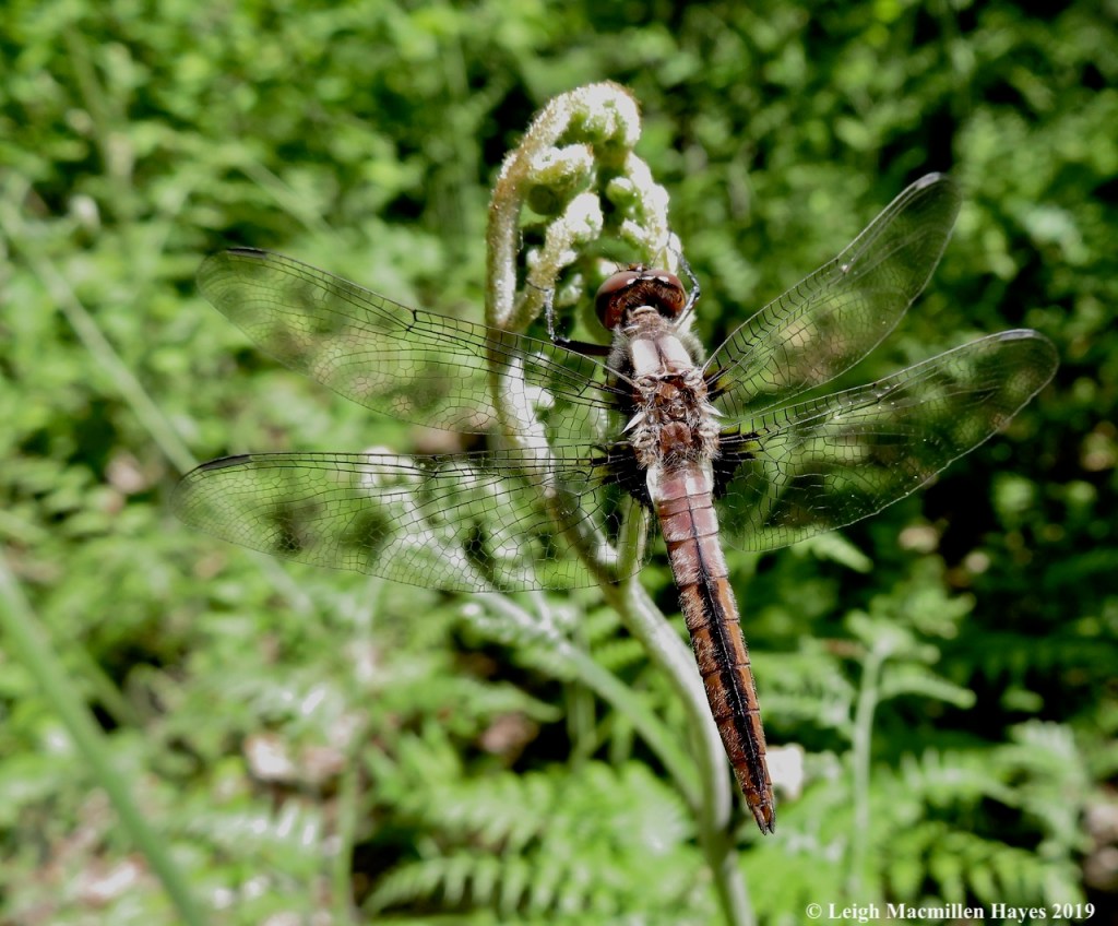 A more mature female Chalk-fronted Corporal perched upon an emerging Bracken Fern was my next point of focus. She’s larger and darker than her young counterparts, her corporal stripes on the thorax marked in gray.