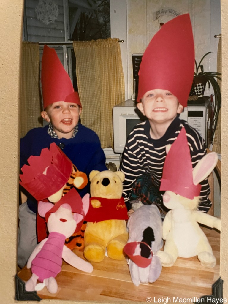 January 14: Imagination has always been the name of the game and the boys have always had vivid ones so, of course, we celebrated Tigger’s birthday, homemade party hats for all.