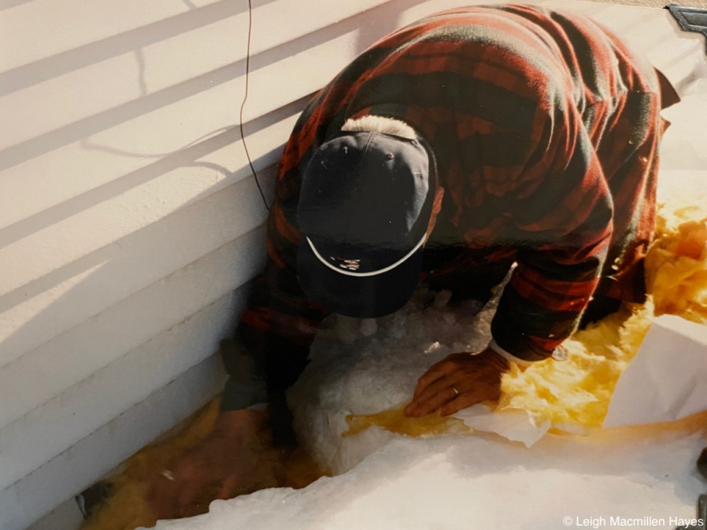 Then he tucked insulation around them.
