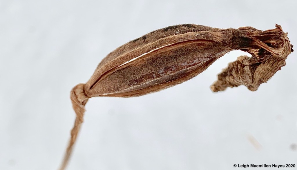 A sudden stop by me and he knew that this wasn’t part of the equation for he had no idea what the structure was that drew my attention. We find these occasionally and they always make me happy. This was the capsule of a Lady’s Slipper and while I suspected that there are more such plants in these woods, we’ll have to return in the spring to verify that assumption.
