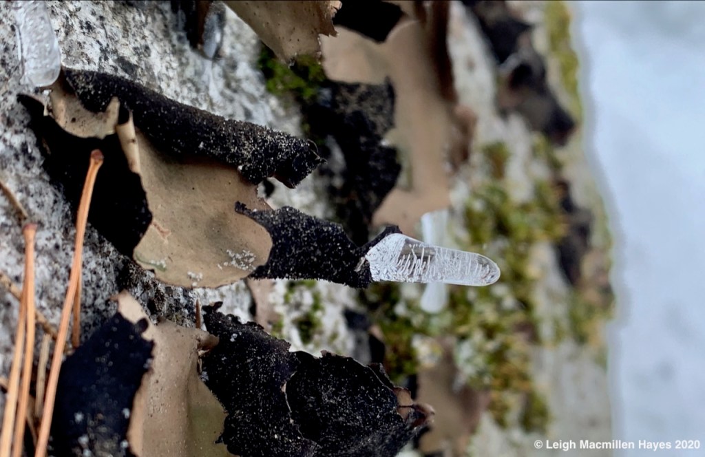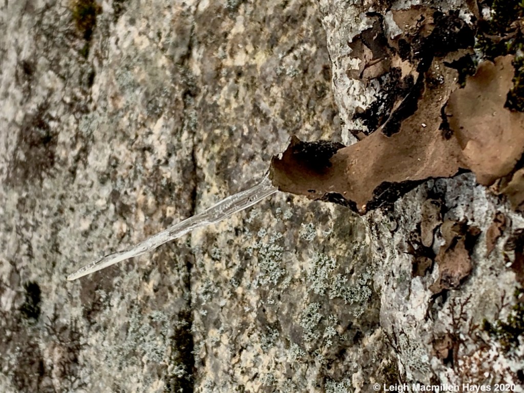 And upon one I discovered an act of gravity I didn’t understand: icicles extending outward and growing parallel to the ground rather than perpendicular to it.