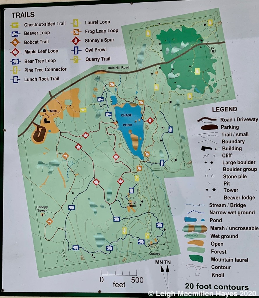 The Laurel Trail lead us across Bald Hill Road and it was there that the great signage we’d enjoyed came to an abrupt end. And so we moved about searching left and right to figure out where to go next.