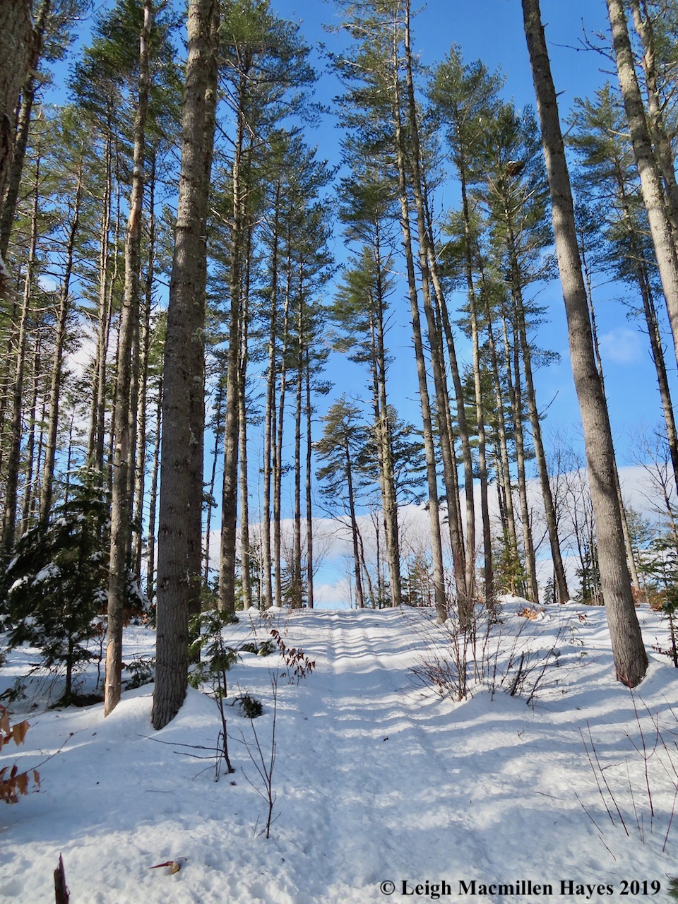 At last I moved on, followed the blazed trail and climbed to the second bench on the property, along a route the deer know so well. Where were they? Also at the edge, again keeping watch?