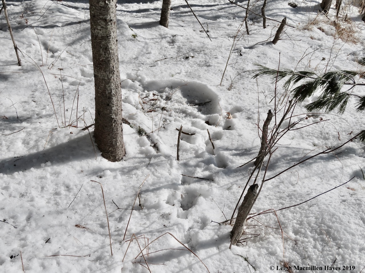 With that in mind, I was going to follow the trail back, but decided instead to journey for a bit beside the brook, where I found a deer bed in the sunniest of spots.