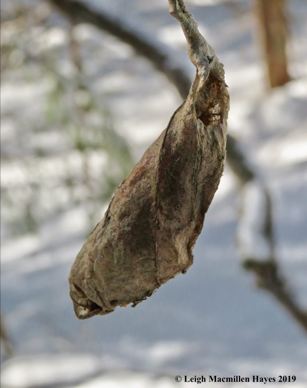 As I wandered about by the stump dump, something else also caught my eye–a promethea silkmoth cocoon.