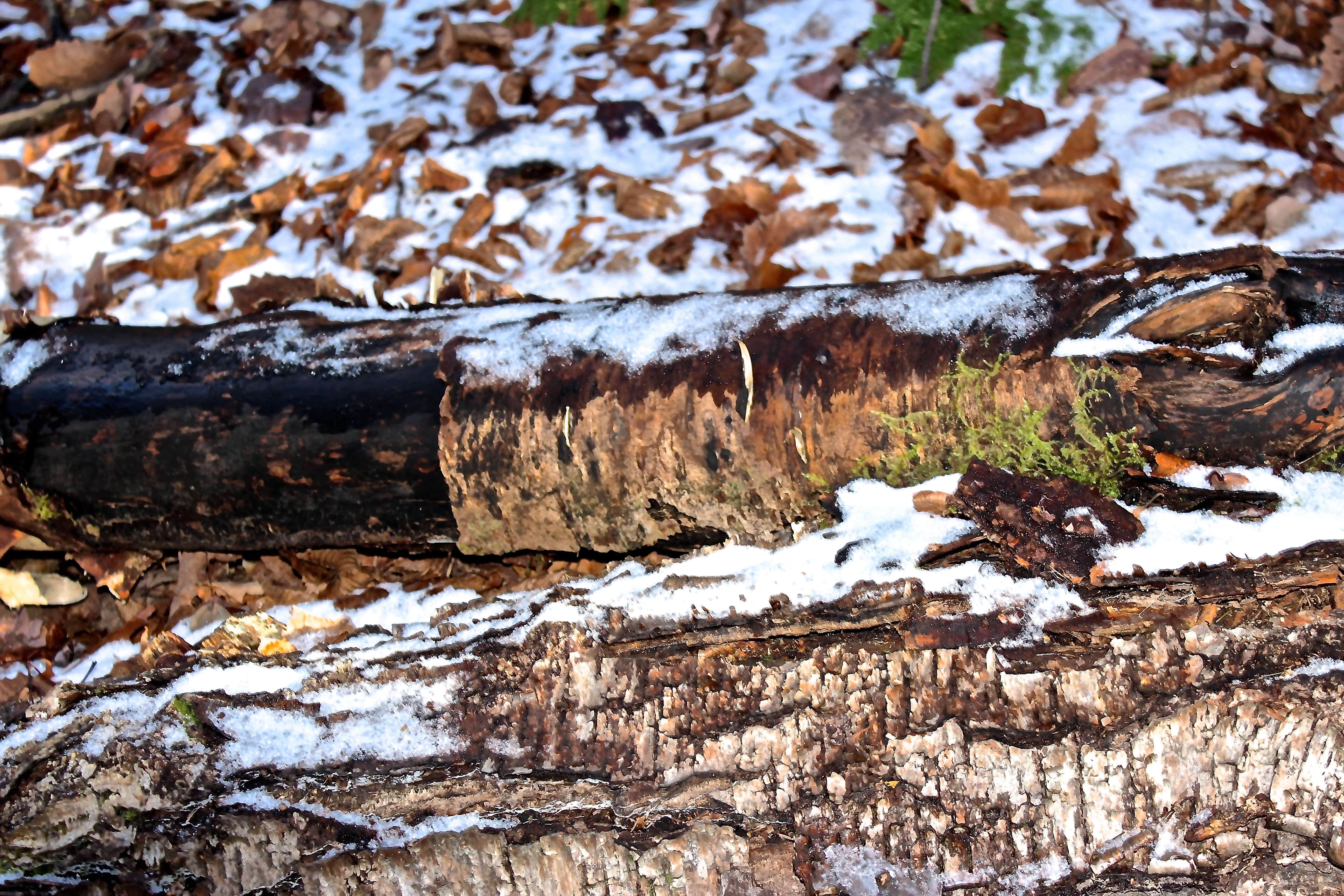 At last we hiked down. One of the best parts about following the same path is that new stories await–when you can take the time to look up. And our pièce de résistance–an old snag. A beautiful old snag. Notice its vertical lines intersected by horizontal lines. We spent a long time studying and caressing this natural sculpture.