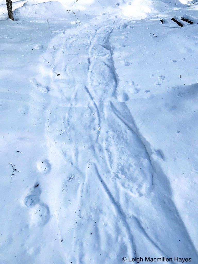 Right now, we are in the midst of offering a program every other week for Loon Echo Land Trust in Bridgton. And the winter focus is tracking. Not easy to do without snow or mud. Wait a second. The animals are always on the move, and without the snow, we must look for signs. And so we did.