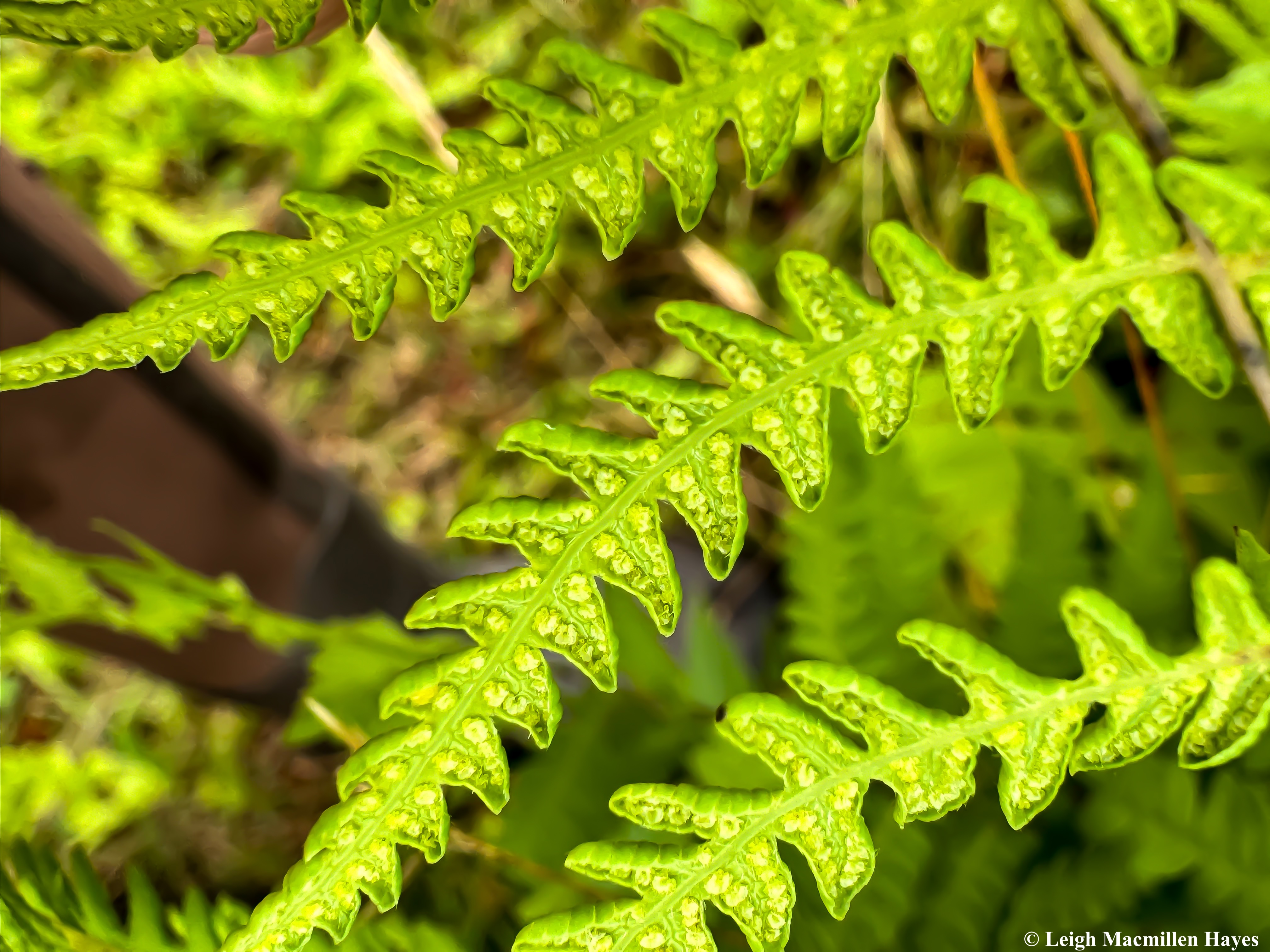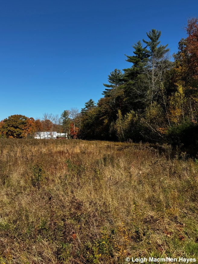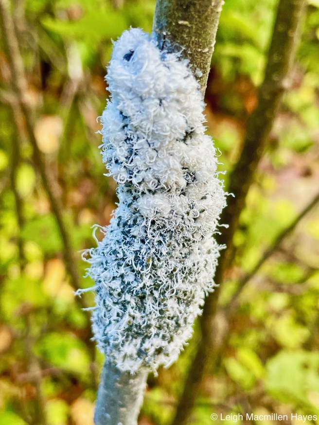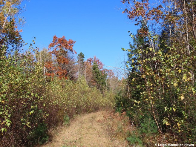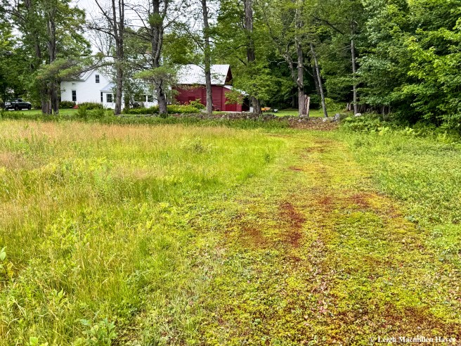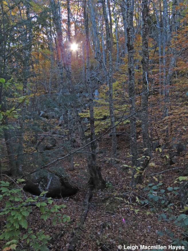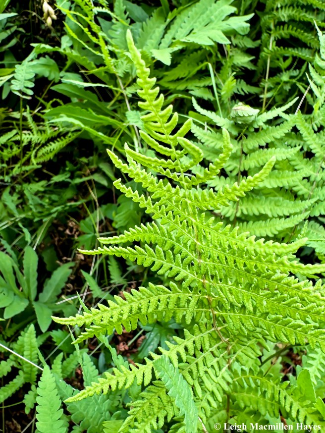The stream turned to forest for the trees told more of the story, as they closed in and I recalled that it wasn’t far from that spot that My Guy and I walked through a damp area where Royal Ferns grew and we found one teeny tiny mushroom fruiting on a hot summer day.