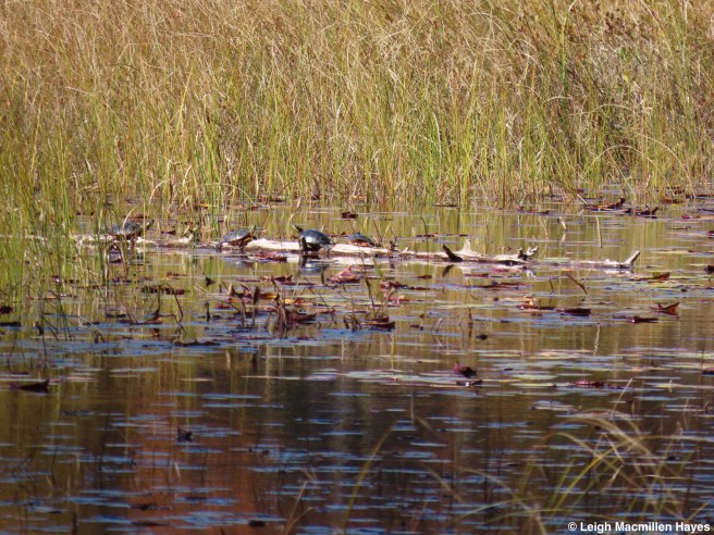 Those who do love to bask, (frogs do this as well) are the Painted Turtles, and the more surface area that is exposed to the sun’s beams, the better. Sometimes I’m surprised when I do capture a photo such as this one, for they are quick to sense my presence or hear me coming, and quickly slip into the water. But if you wait a few minutes, sometimes they’ll reemerge.