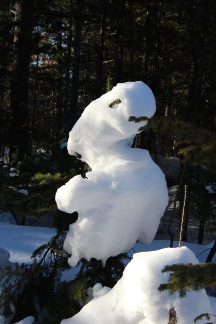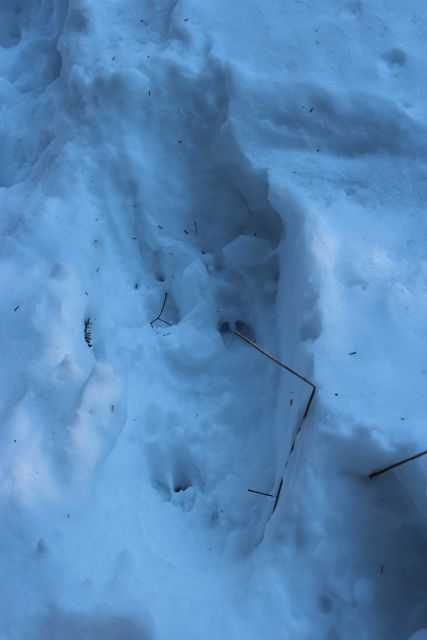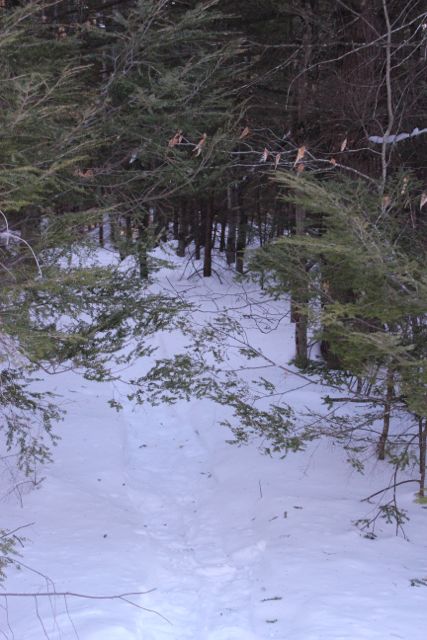 Heading down. Transitioning again. There were a zillion snowshoe hare trails. And mice. And squirrel. Good feeding grounds for a bobcat.