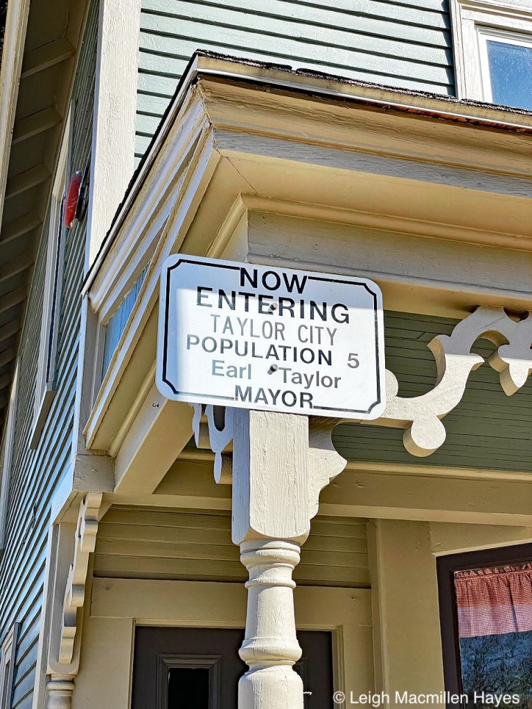 and a sign in Taylor City, where Earl Taylor served as mayor until his death at the age of 95 in 2018. Earl was a graduate of Par-Sem it seems. He ran the general store and was quite active in town affairs–on both sides of the border.