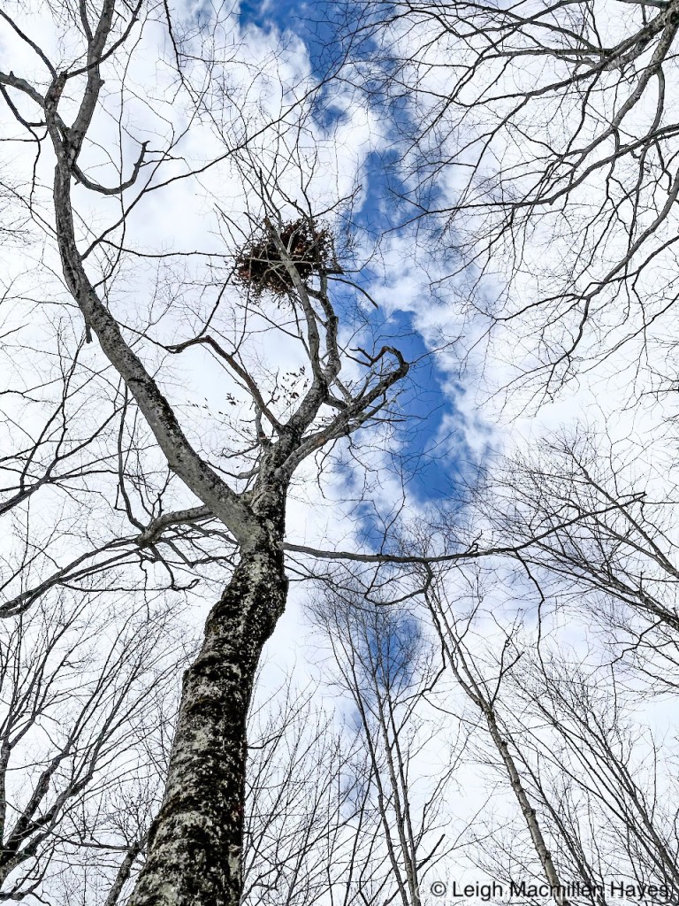 There was also a bear nest high up in a beech tree–where last summer a black bear sat for a bit, pulled the branches inward till some of them broke, and dined on the beech nuts.