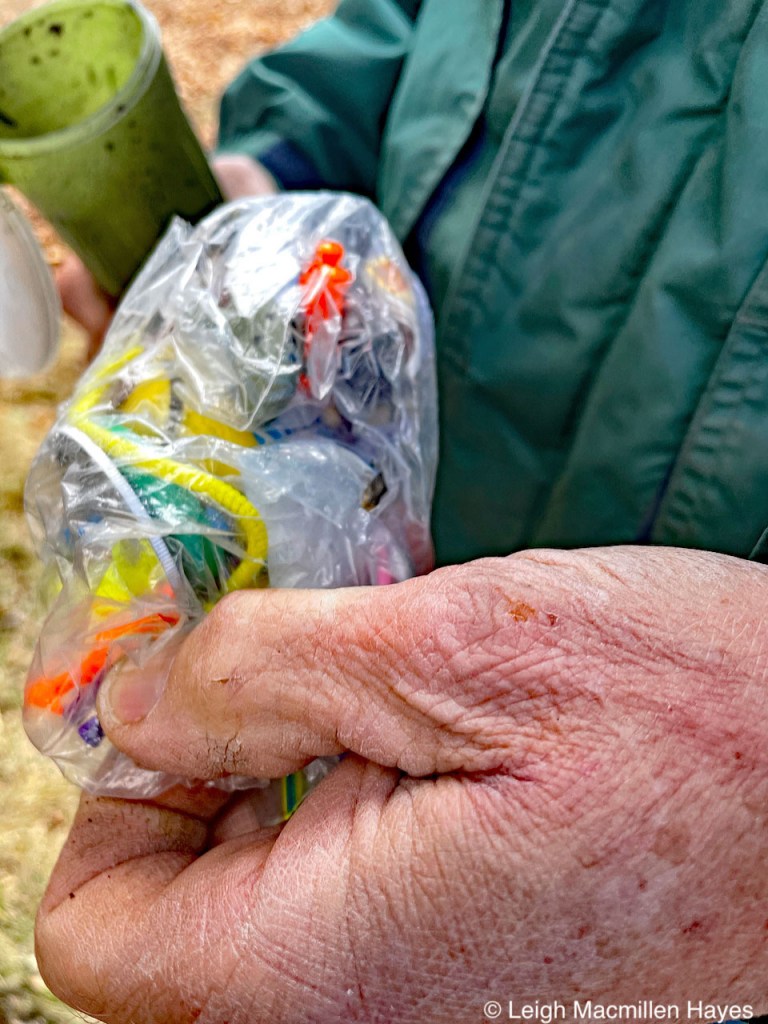 That was Saturday. But . . . that journey wasn’t enough, and so despite high winds on Monday, I created a mini-list for him and off we went in search of five more geocaches.