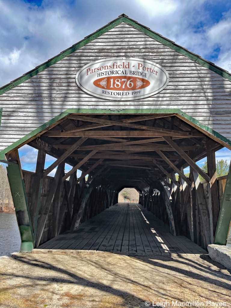 Local lore includes this tale: “There was a dispute over the costs of building and maintaining the new bridge. A group of selectmen from each town met on the old, uncovered span. The meeting culminated when a selectman from Parsonsfield took a jackknife and tossed it at the midpoint of the span. He proceeded to say ‘the town of Parsonsfield shall build so far and no further!’“
