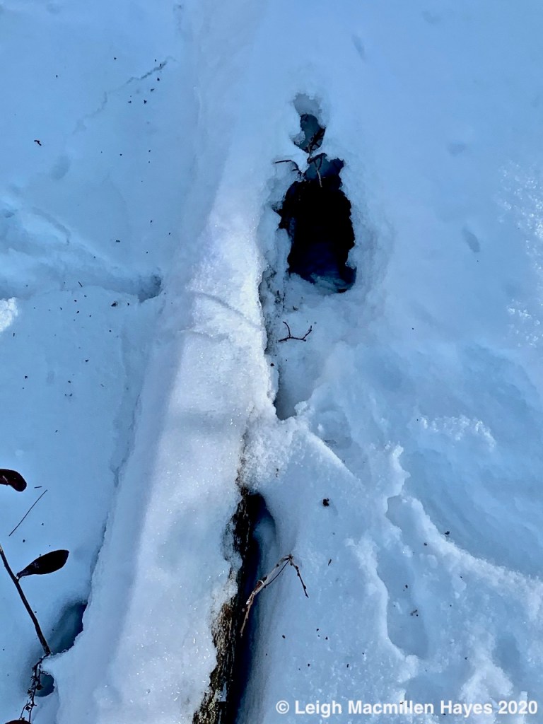 After it scurried again, we watched as it tried to hide in the snow–and played peek-a-boo with us.