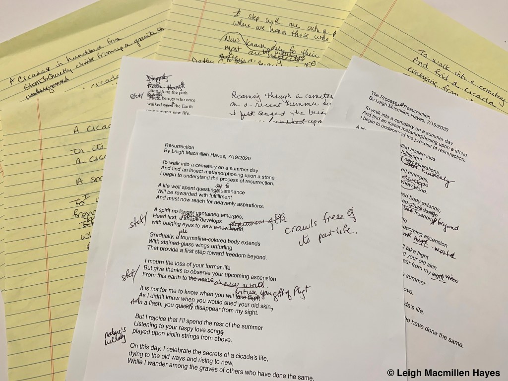 I warned you that last week’s Cemetery Cicada Celebration would be revised. And so it was. Over and over again as is my custom.