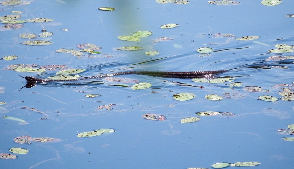Also note how its coloration differs from one snake to another. Blotches between the stripes are common on this species but not a part of a Ribbon Snake’s appearance.
