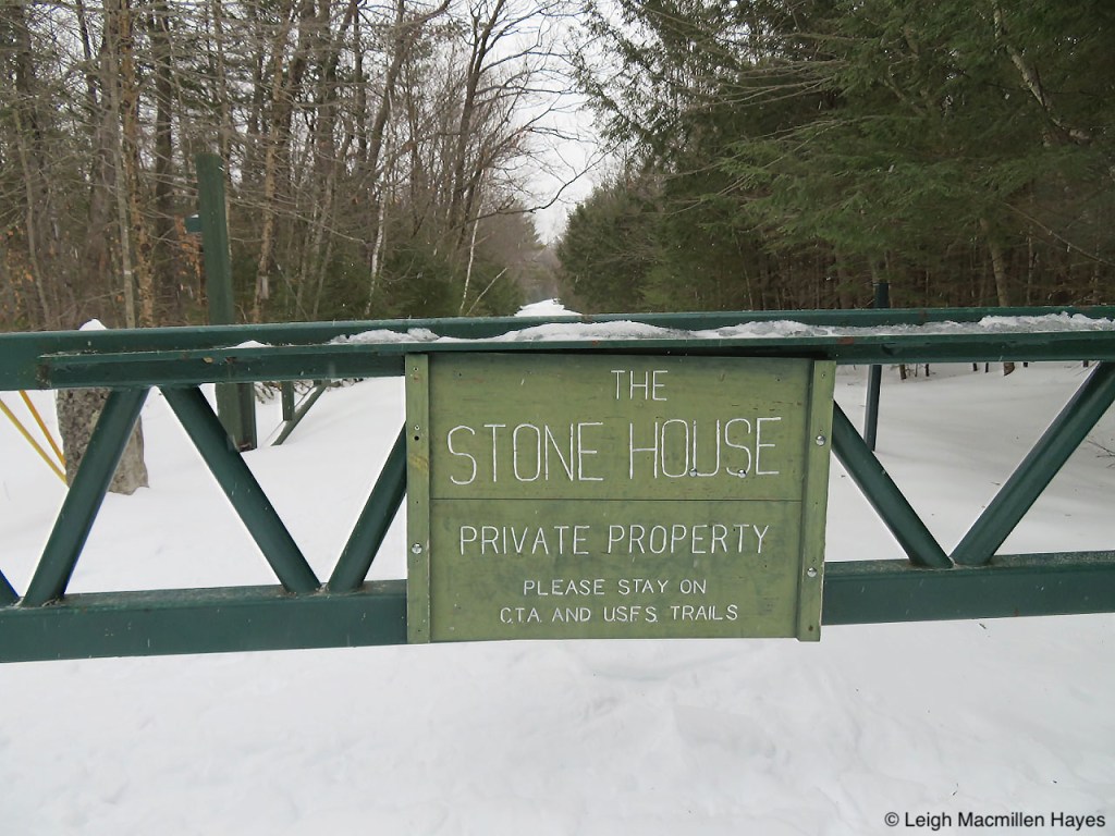The airfield passes by the Stone House and hikers must stay on the trail. In Cold River Chronicle, local historian David Crouse wrote recently: “The Stone House, located on the Stone House Road (formerly known as the Shell Pond Road) in North Stow, Maine, was built about 1840 of split granite blocks quarried on nearby Rattlesnake Mountain by Abel Andrews (1807-1884), who settled there with his family in the 1830s. Abel’s wife, Lucinda Brickett (1817-1884), was daughter of John Brickett of the so-called Brickett Place at North Stow. The homestead passed to Abel’s son Elden (1836-1914) and then to Elden’s son Ira Augustus (1863-1942), who sold it in 1917. Since 1917, this property has had a succession of owners other than the Andrews family. Between 1951 and 1986 it was owned by Saunders Brothers Company of Westbrook, ME, who built a private 1600 foot airstrip in the field south of the stone house. Saunders Brothers used the stone house as a hunting lodge for their employees and guests. In 1986, the property was purchased by David Cromwell. The Stone House farm property is still in private ownership and is completely surrounded by land owned by the U. S. Forest Service’s White Mountain National Forest.”