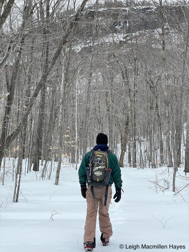 We headed into the wilds today where we didn’t have cell coverage which was quite okay with us. It was a favorite hike, though we weren’t sure what the conditions would be so we brought both snowshoes and micro-spikes.