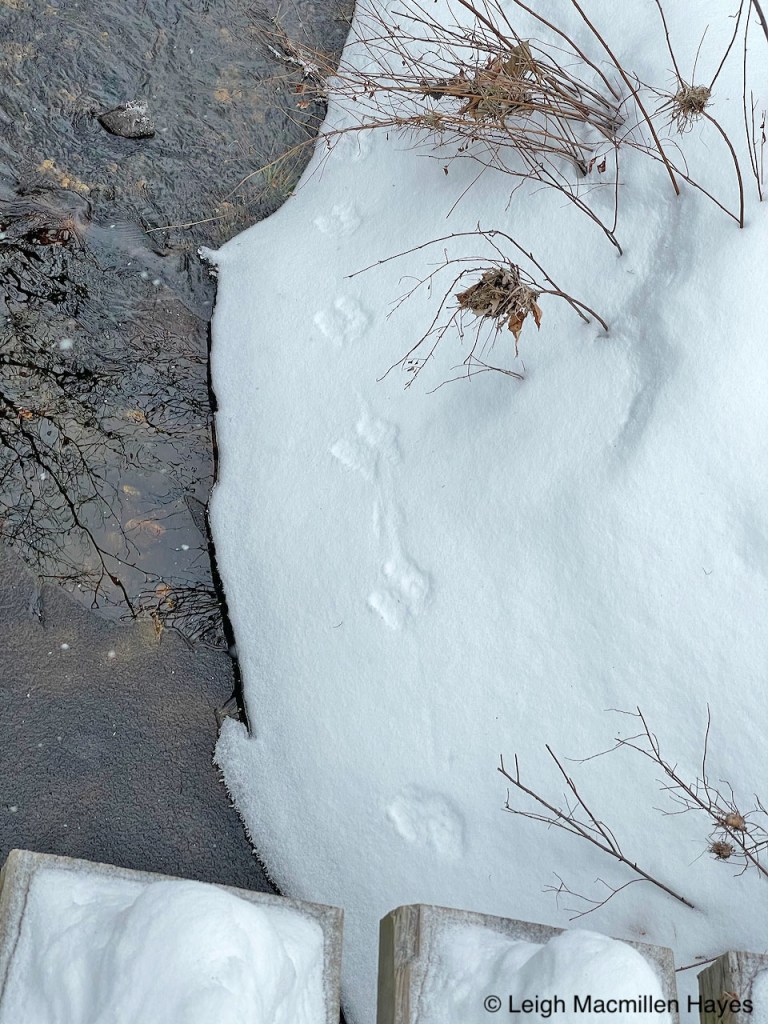 Deer tracks also drew our attention and we looked at the shape as well as the depth and finally found two cloven toes deep in the snow.
