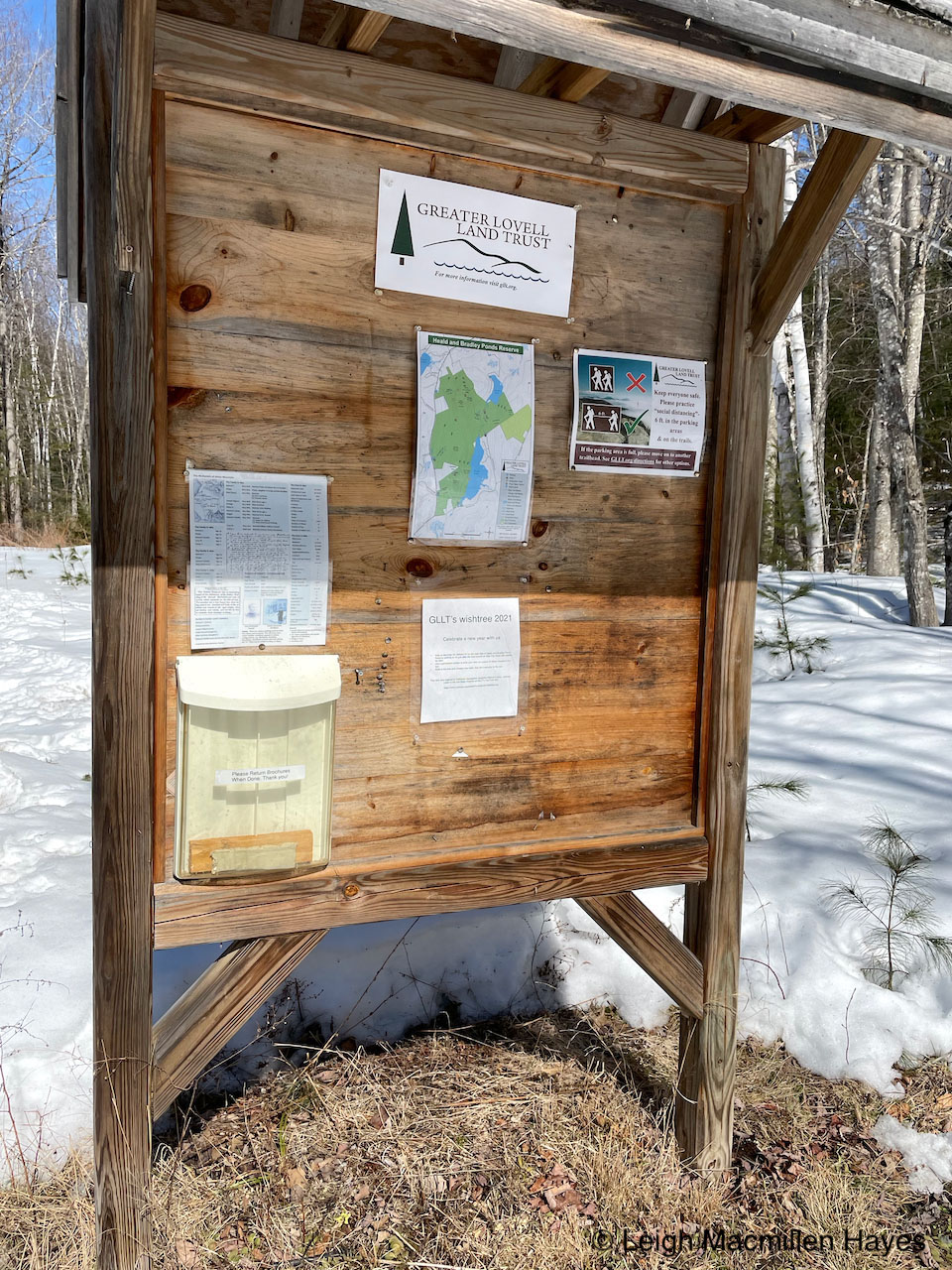 Almost a mile in we reached the starting point for our expedition. Much but not all of the Stone House property is conserved under an easement with Greater Lovell Land Trust.