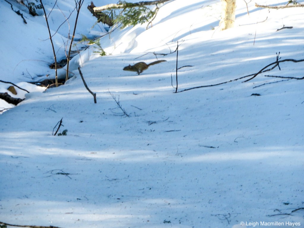 And I’ll miss having the opportunity to spot sights like this–the track of a Mink. I didn’t have Trackards with me for this trip so I grabbed chapstick from my pocket for size. The chapstick is 2.5 inches in length and the trail width was a wee bit longer.