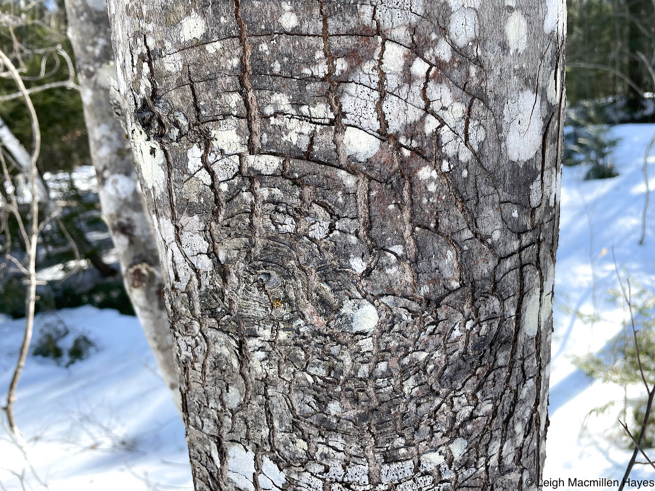 Here, only a few years ago, one among us, yes Alice, that would be you, realized that in this spot grew white oak, a tree that we had previously believed no longer grew in these parts given its use in barrel making and other purposes. That is, until we recognized the chunky blocks of bark that helped to negate that assumption.