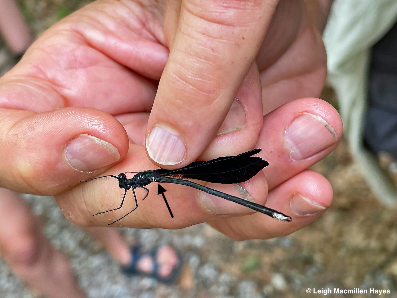 A little further down the trail we reached a beaver lodge that some of us had seen under construction in August 2022, and gathered game camera photos over the course of time, and spotted all kinds of sign of activity each time we visited, until that is, May. When it rained. And rained. And rained. In a torrential manner. And the dam the beavers had built was breached. And they disappeared. And we know not their fate.
