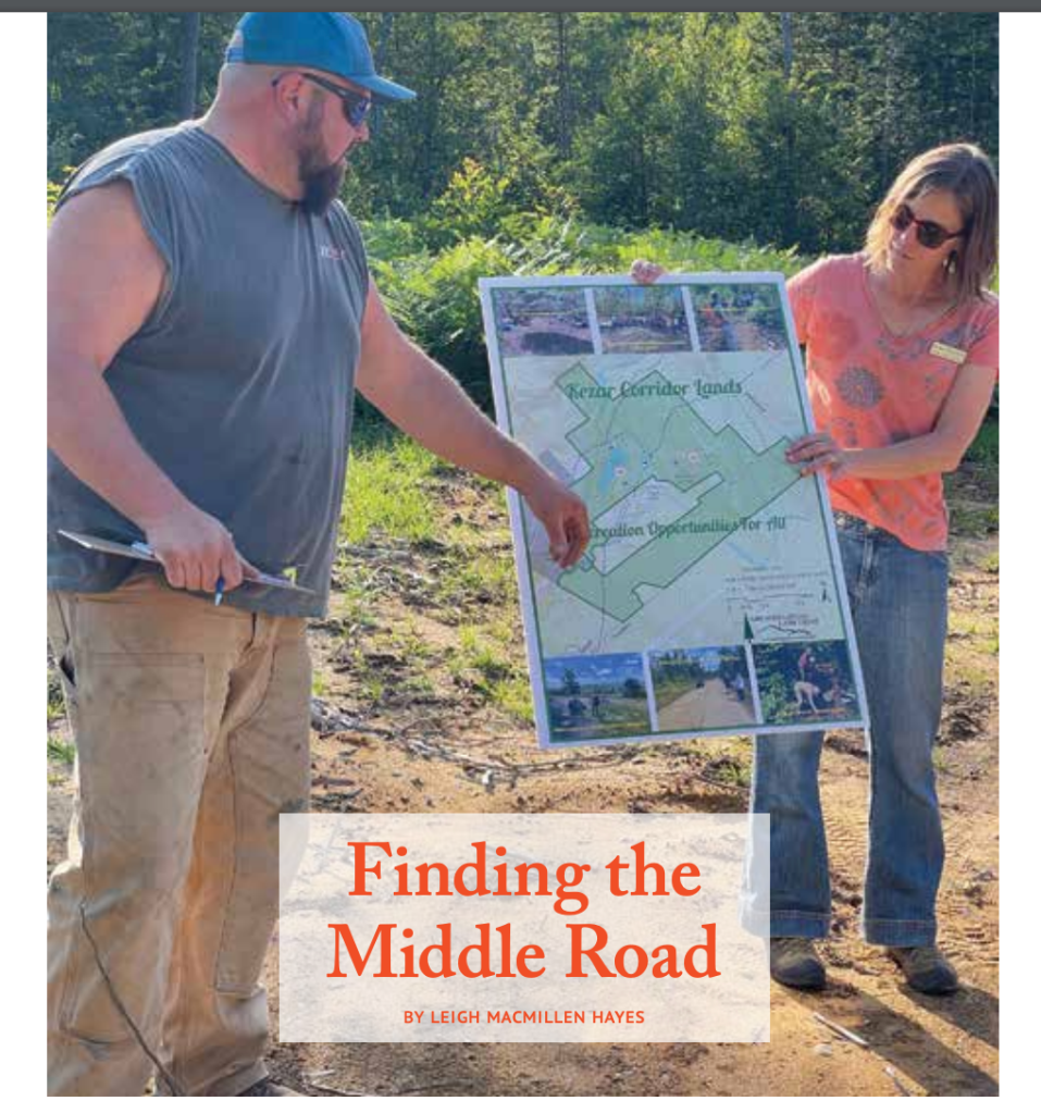 This last article resonated with me because it’s about two people from different sides of the table who sat down to chat and realized they have a lot in common and figured out a way to work together. Rex Rolfe of Rolfe Corporation in Bridgton, owns an aggregate /excavation business, and Erika Rowland is the former Executive Director at Greater Lovell Land Trust, where I also work.